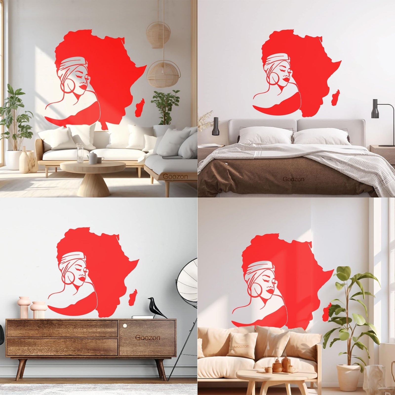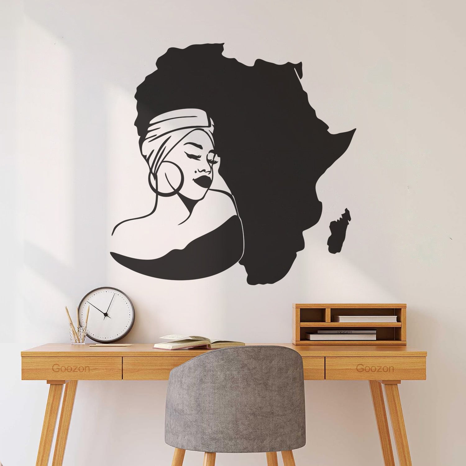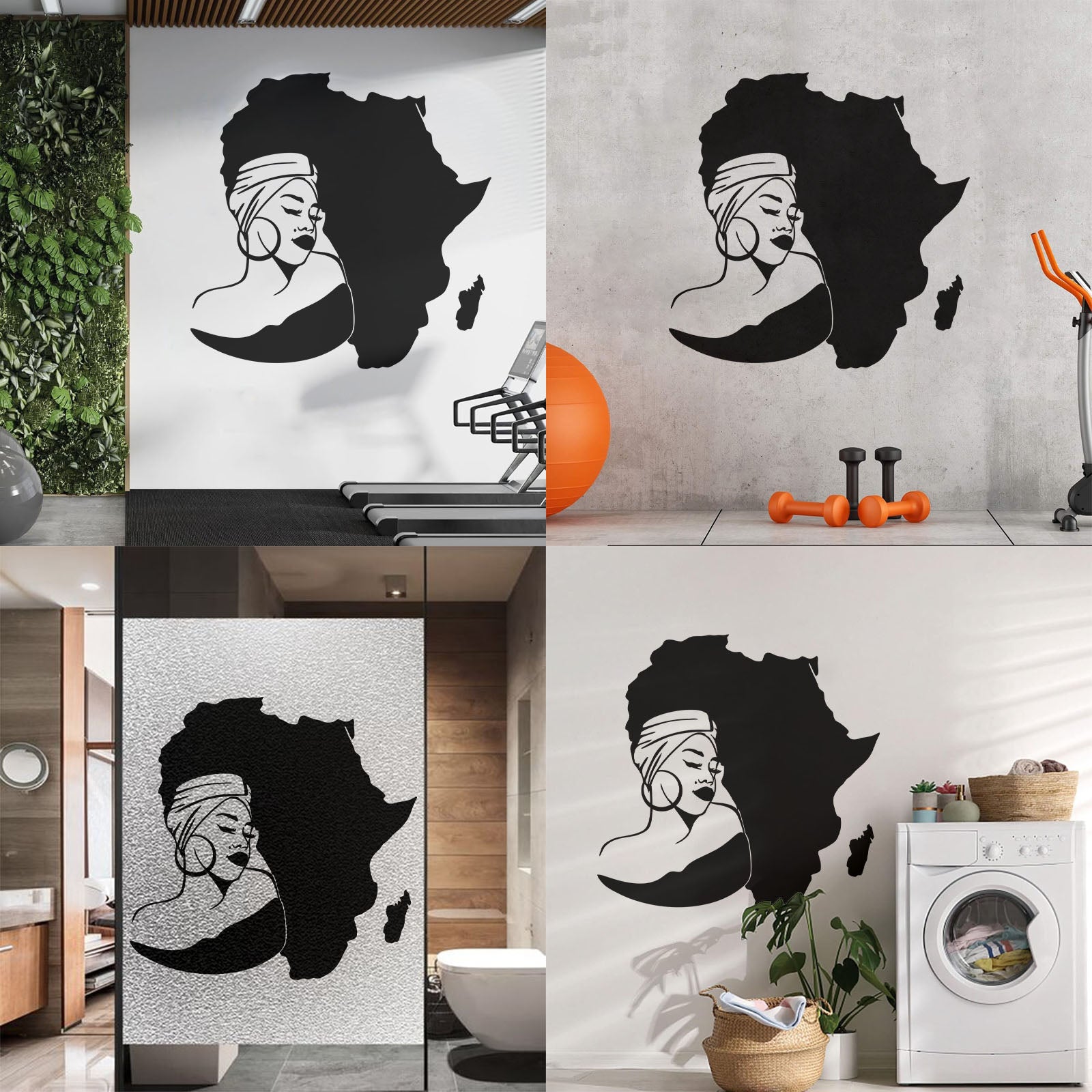 Lettering Stickers Africa Continent Map African Girl Turban Art Mural Painting