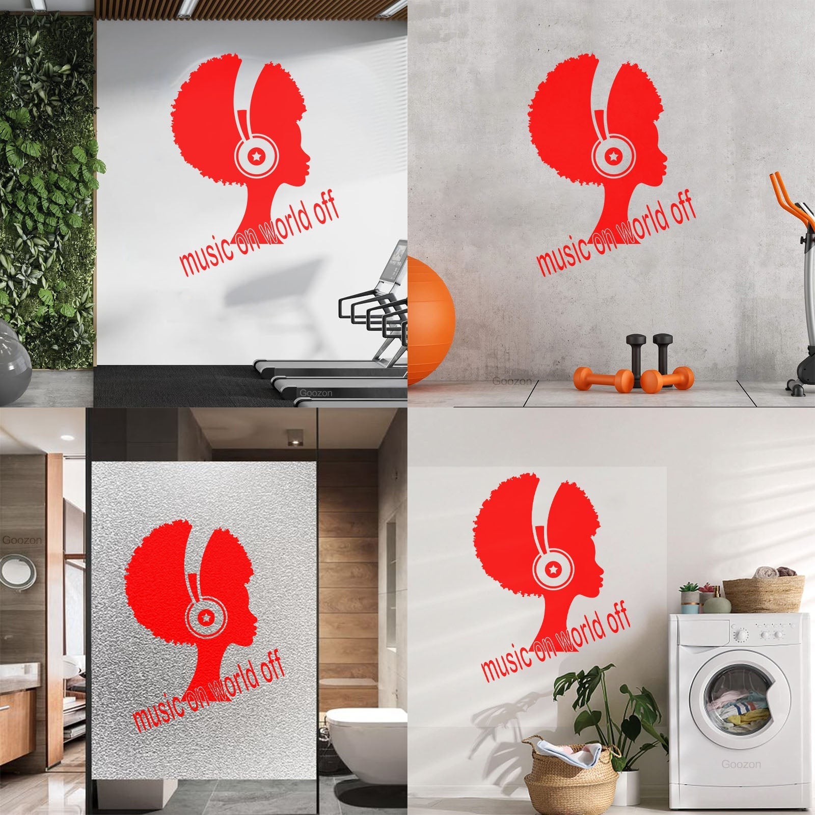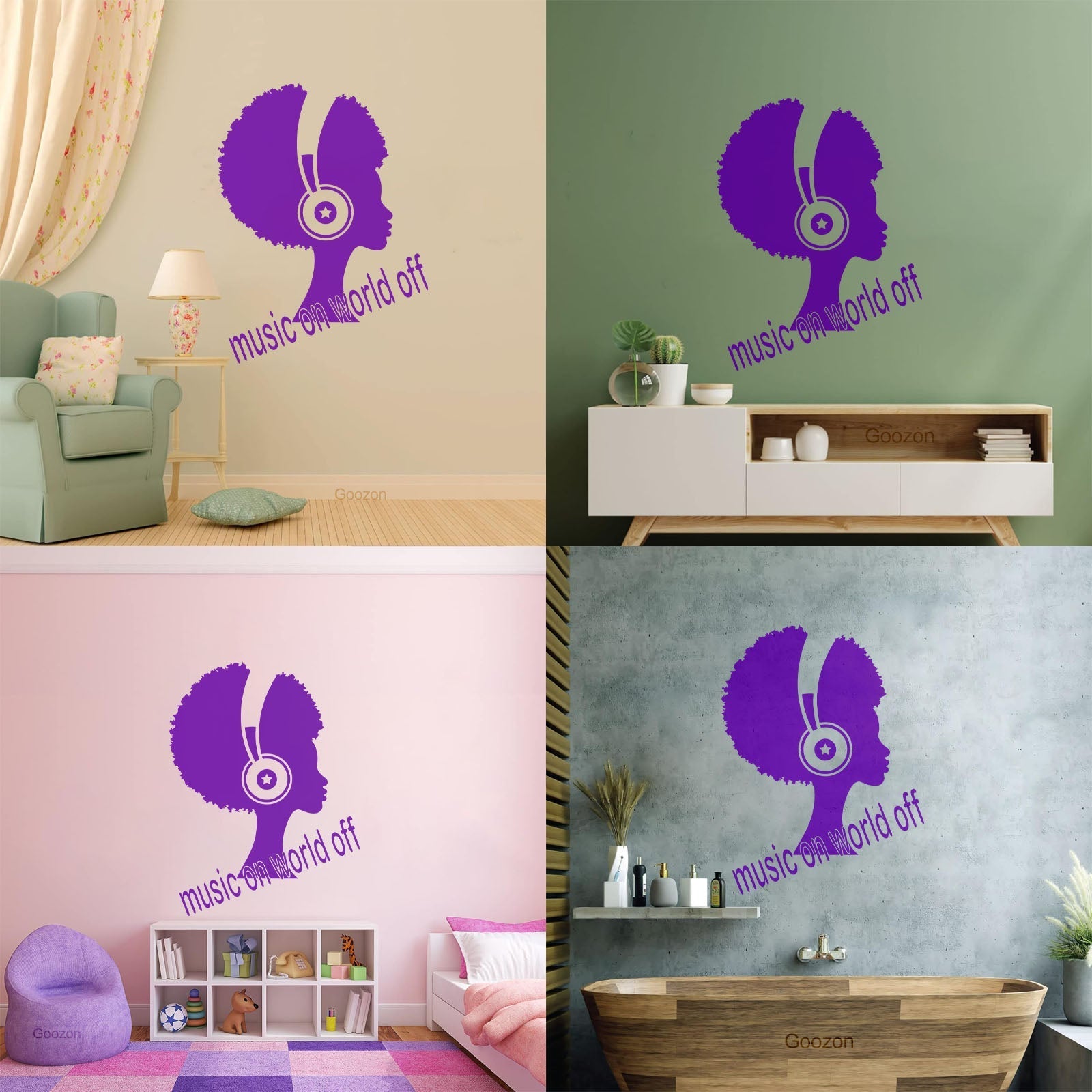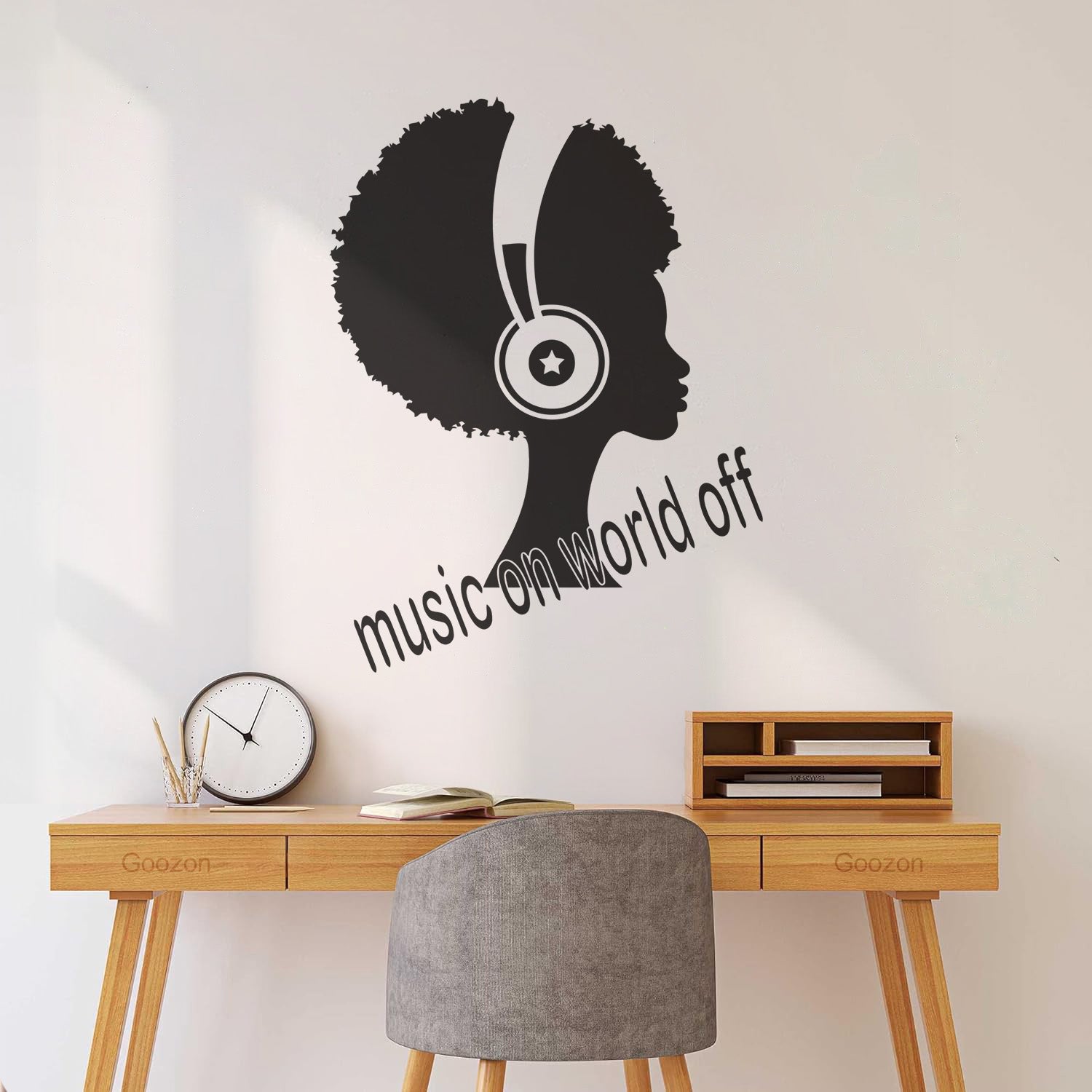 Wall Decals Music On World Off Inspirational Quote Words African Girl Headphones Wall Beautification