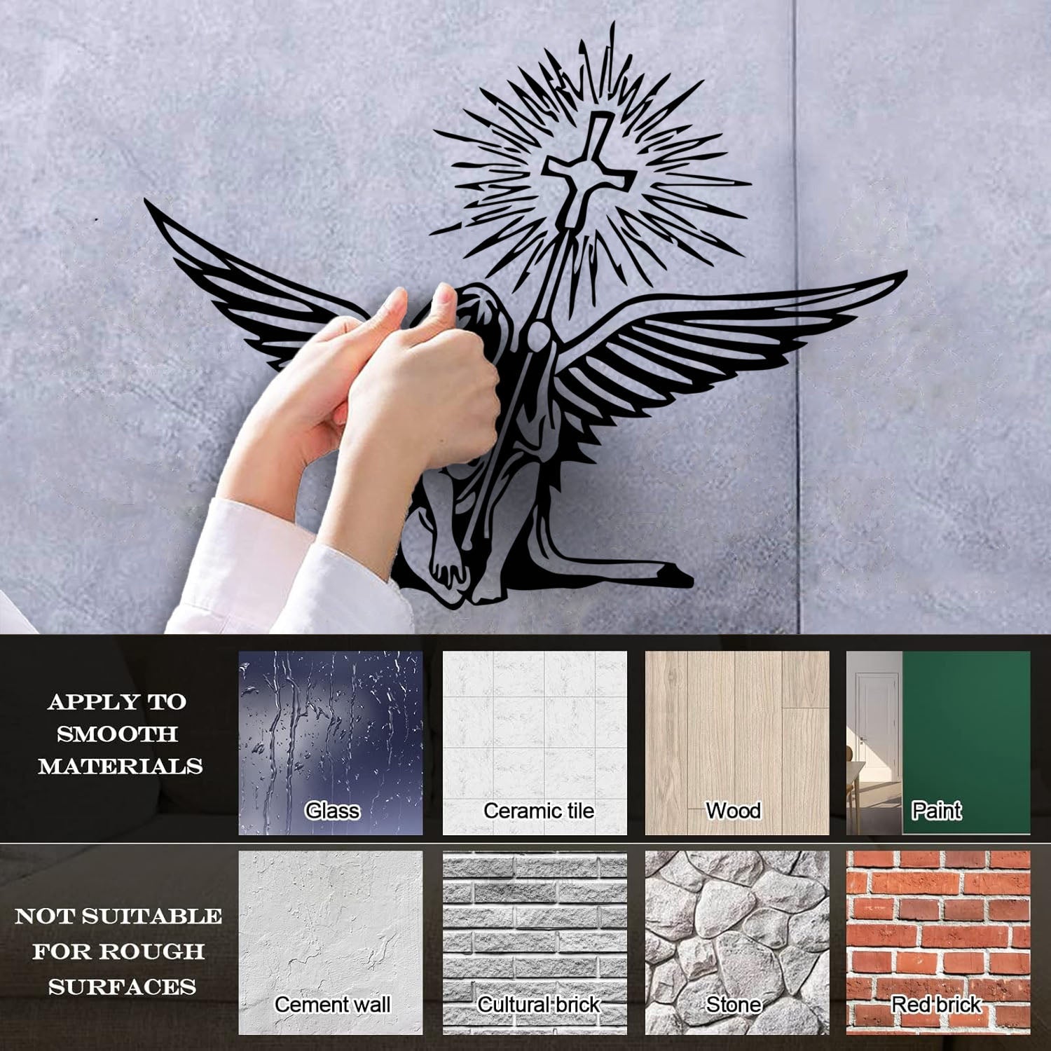Lettering Decals Angel Holding Christian Holy Cross Religious Easy Installation