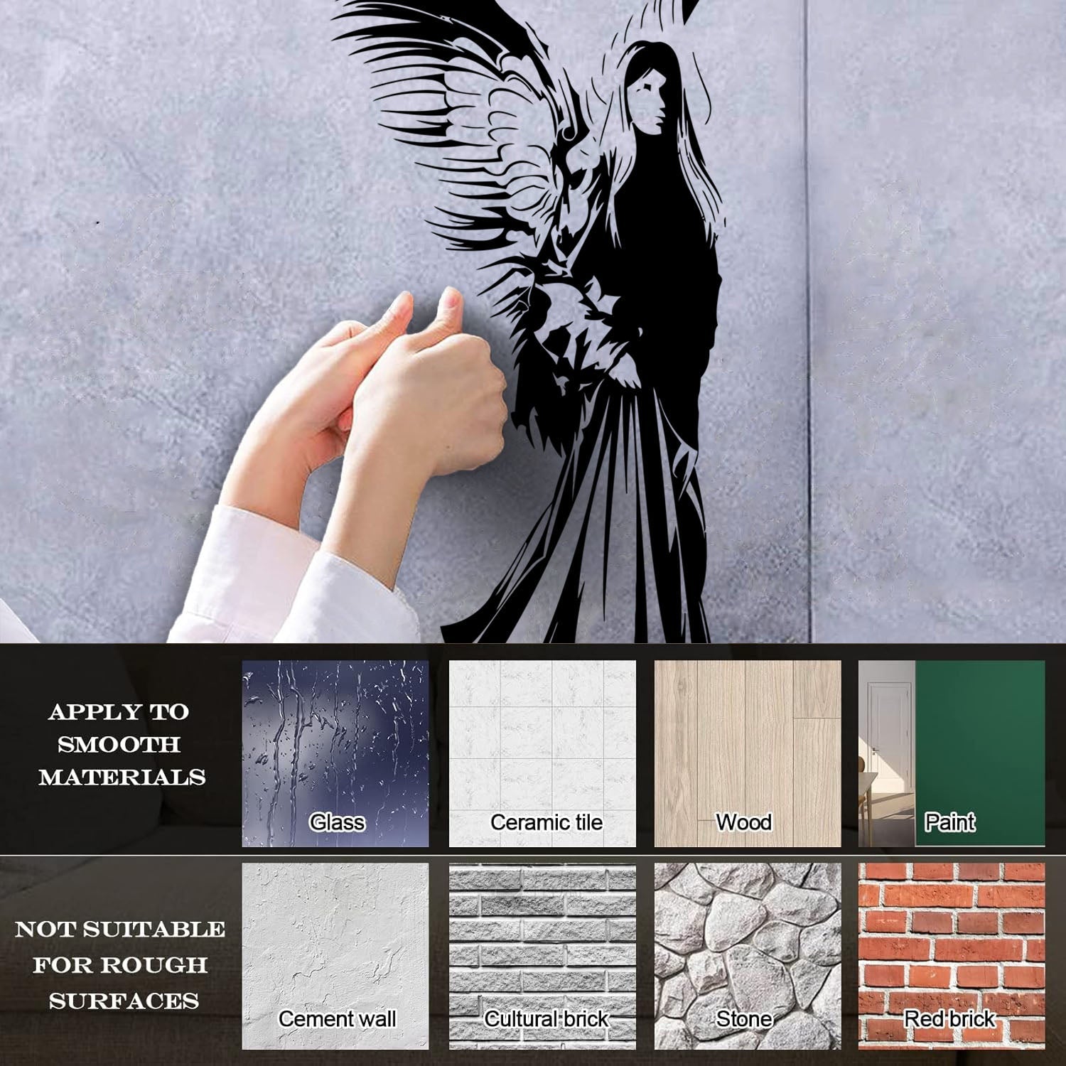 The wall sticker has an adhesive backing.