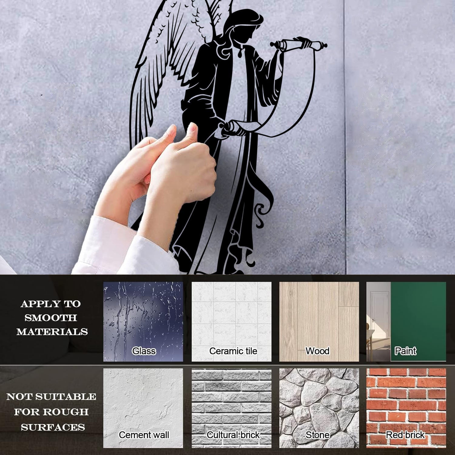 Gently press the decal area to secure it firmly to the wall.
