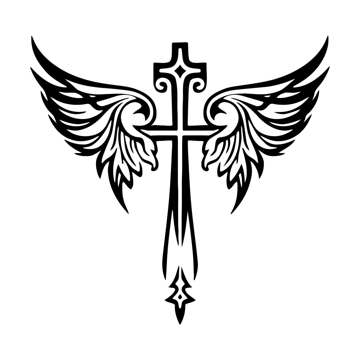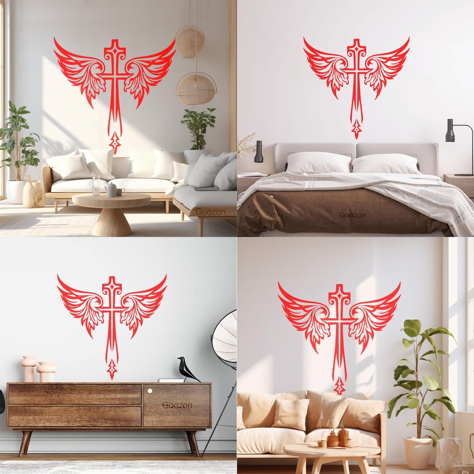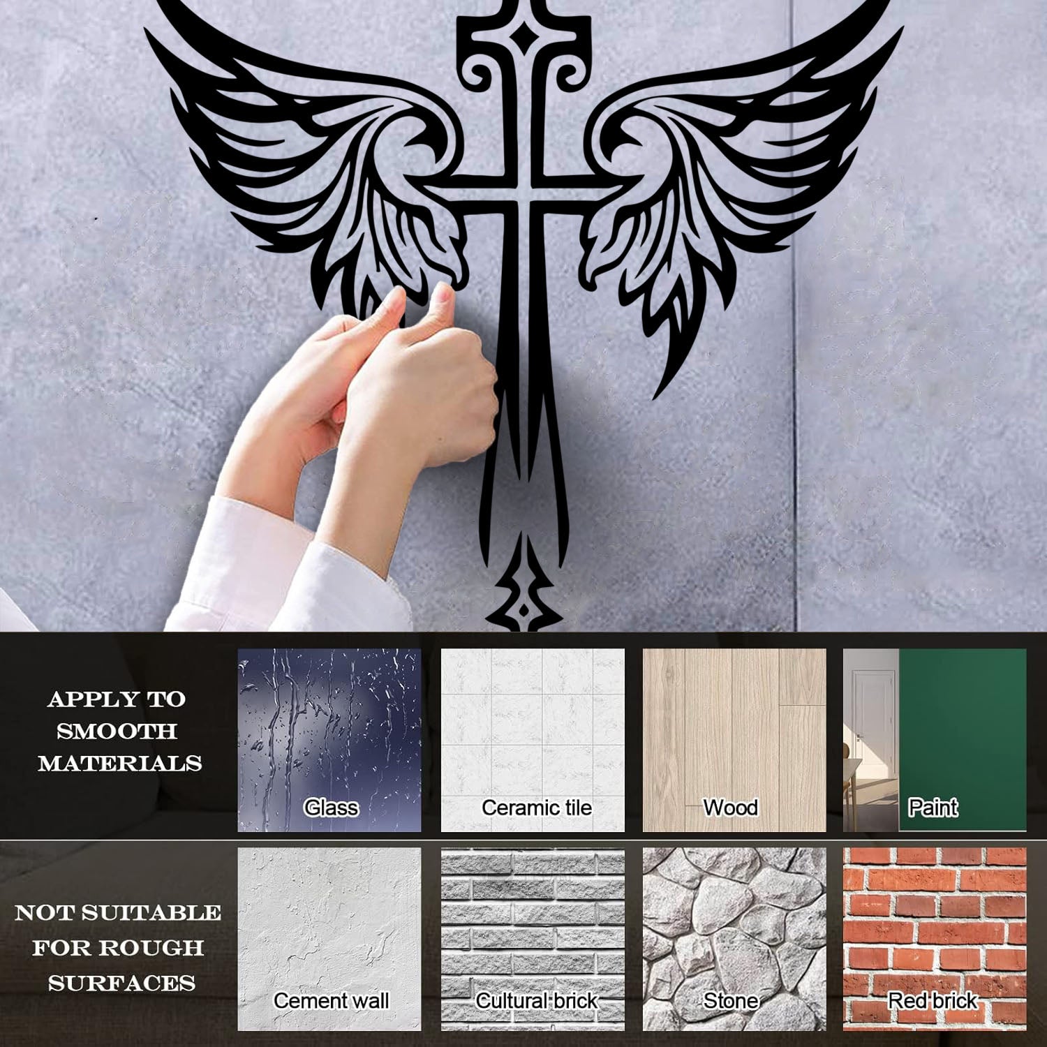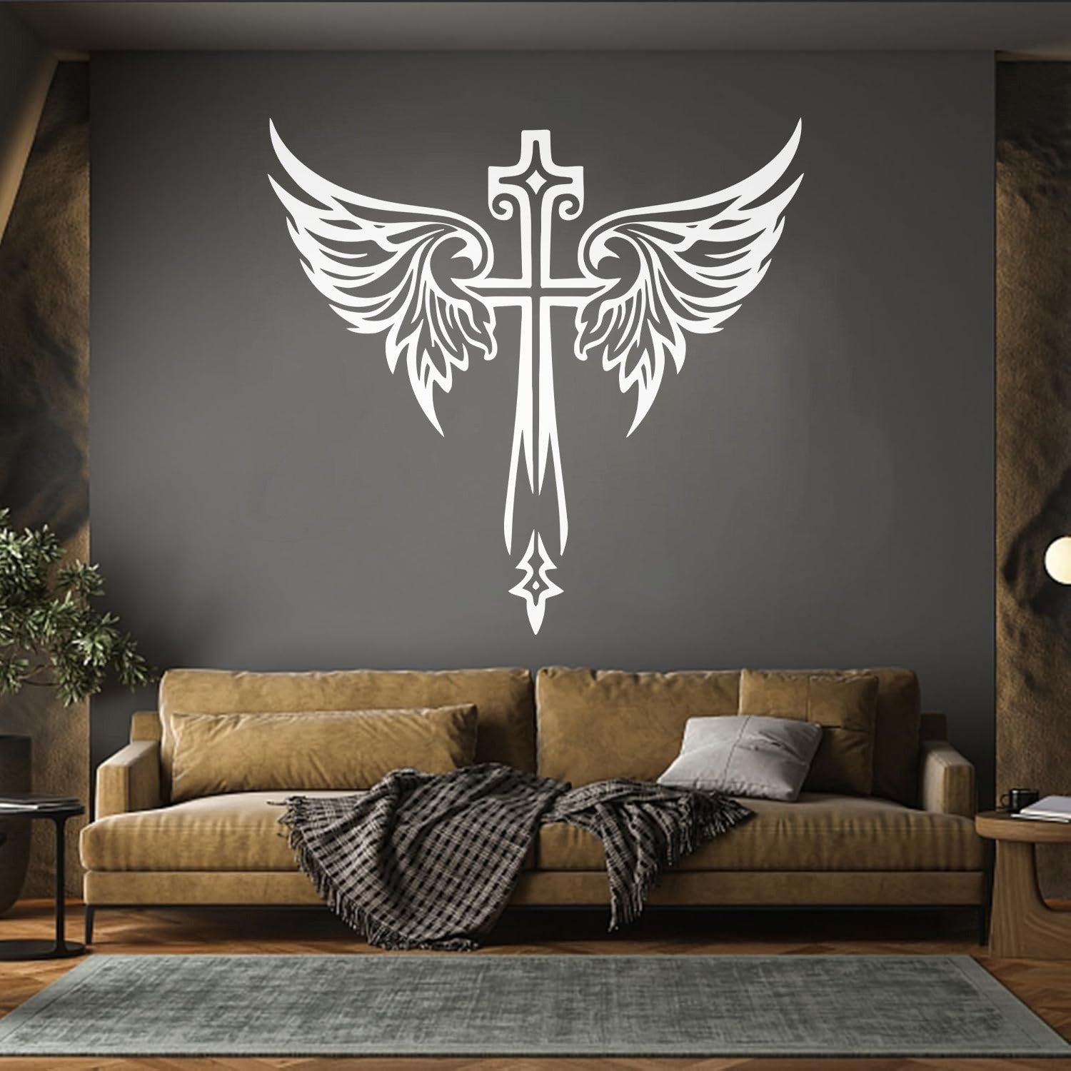 Vinyl Art Sticker Jesus Beautiful Cross Angel Wings Christian Symbols Wall Beautification