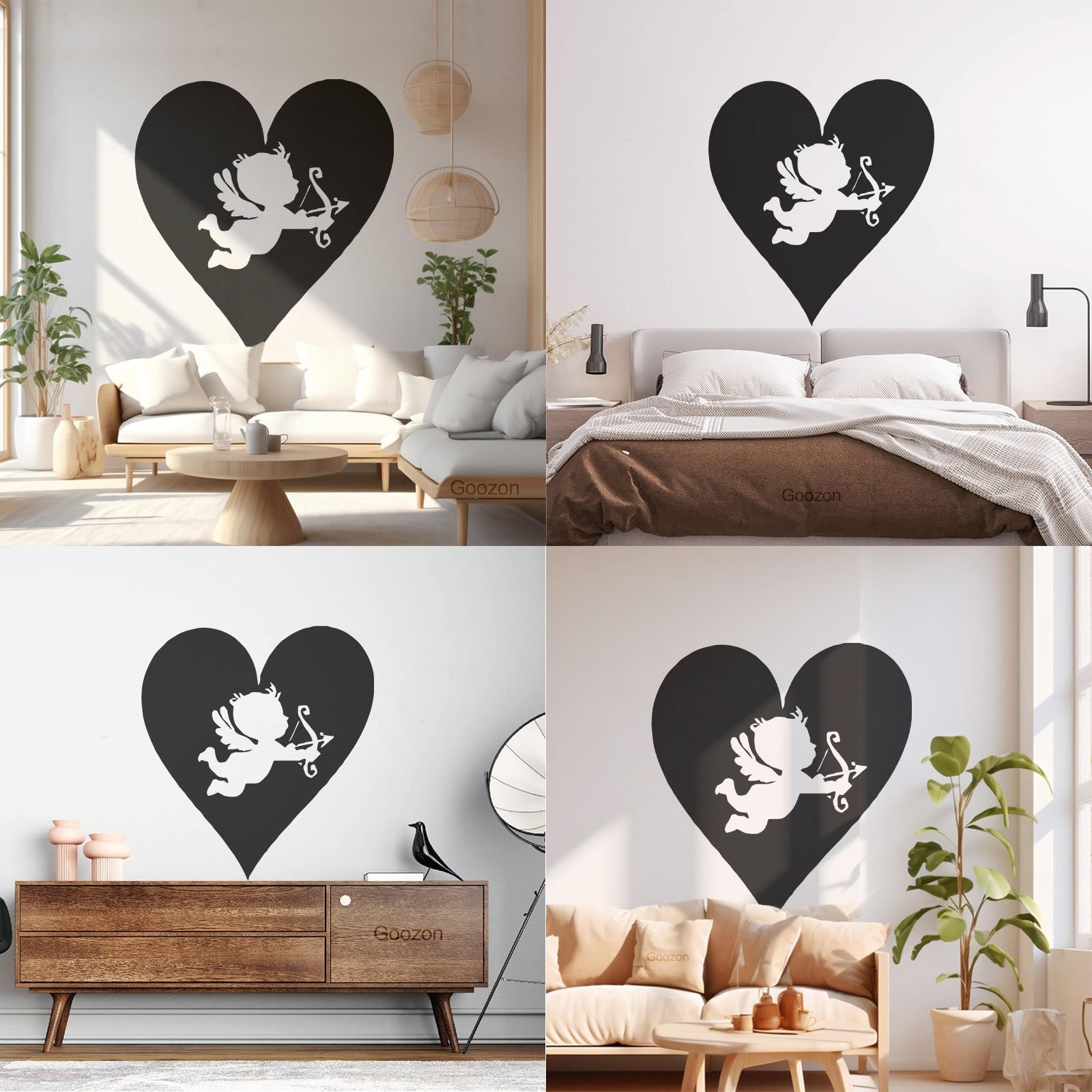 Wall Vinyl Sticker Decor Hearts Angel Cupid Romantic Multi Color Selection