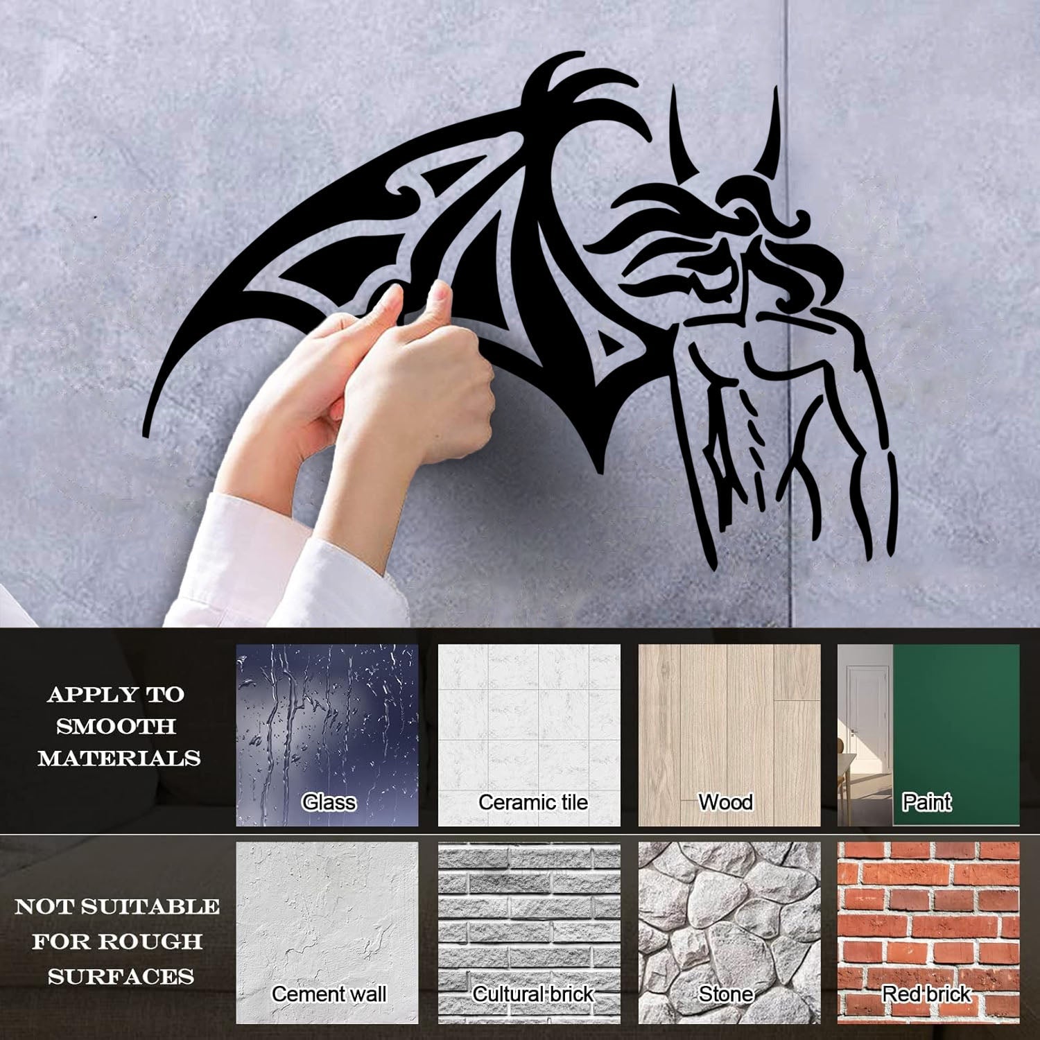 Gently press the decal area to secure it firmly to the wall.