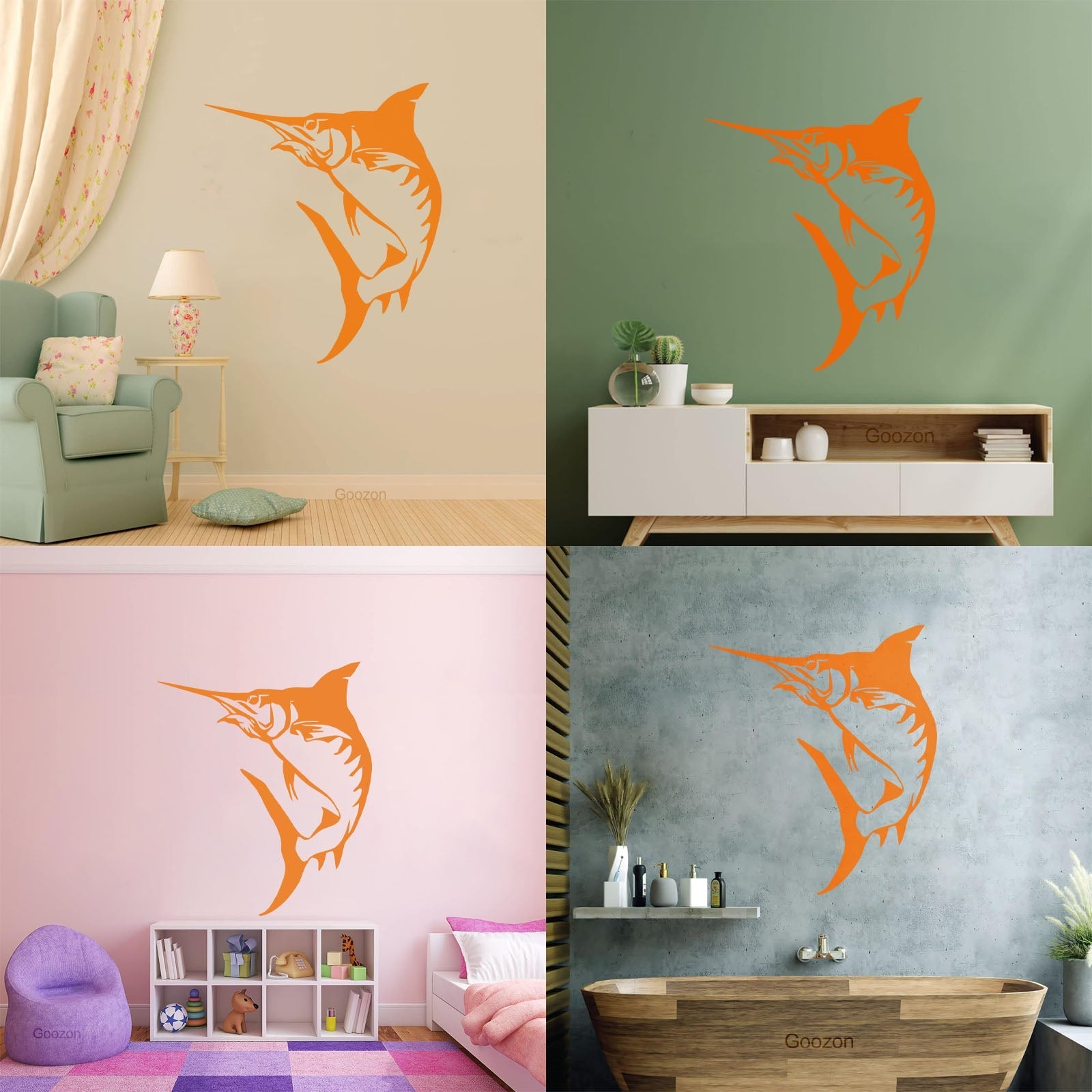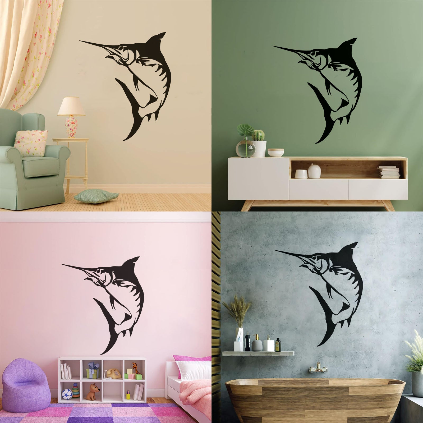 Mural And Wall Vinyl Decal Marlin Fish Fishing Hobby Marine Animal Easy Installation