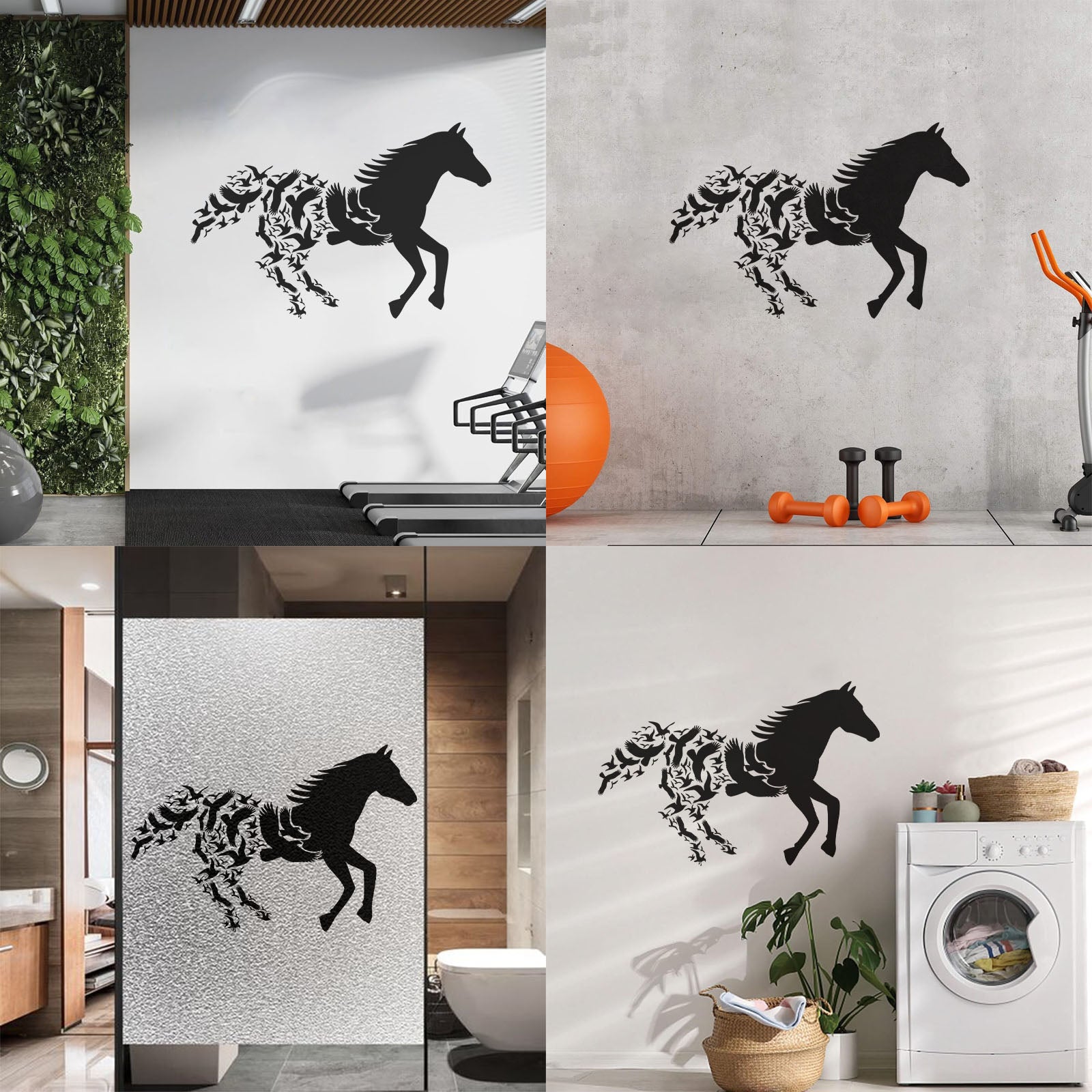 Fine Carving Decals Abstract Animals Galloping Horse Racing Birds Car Body Decoration