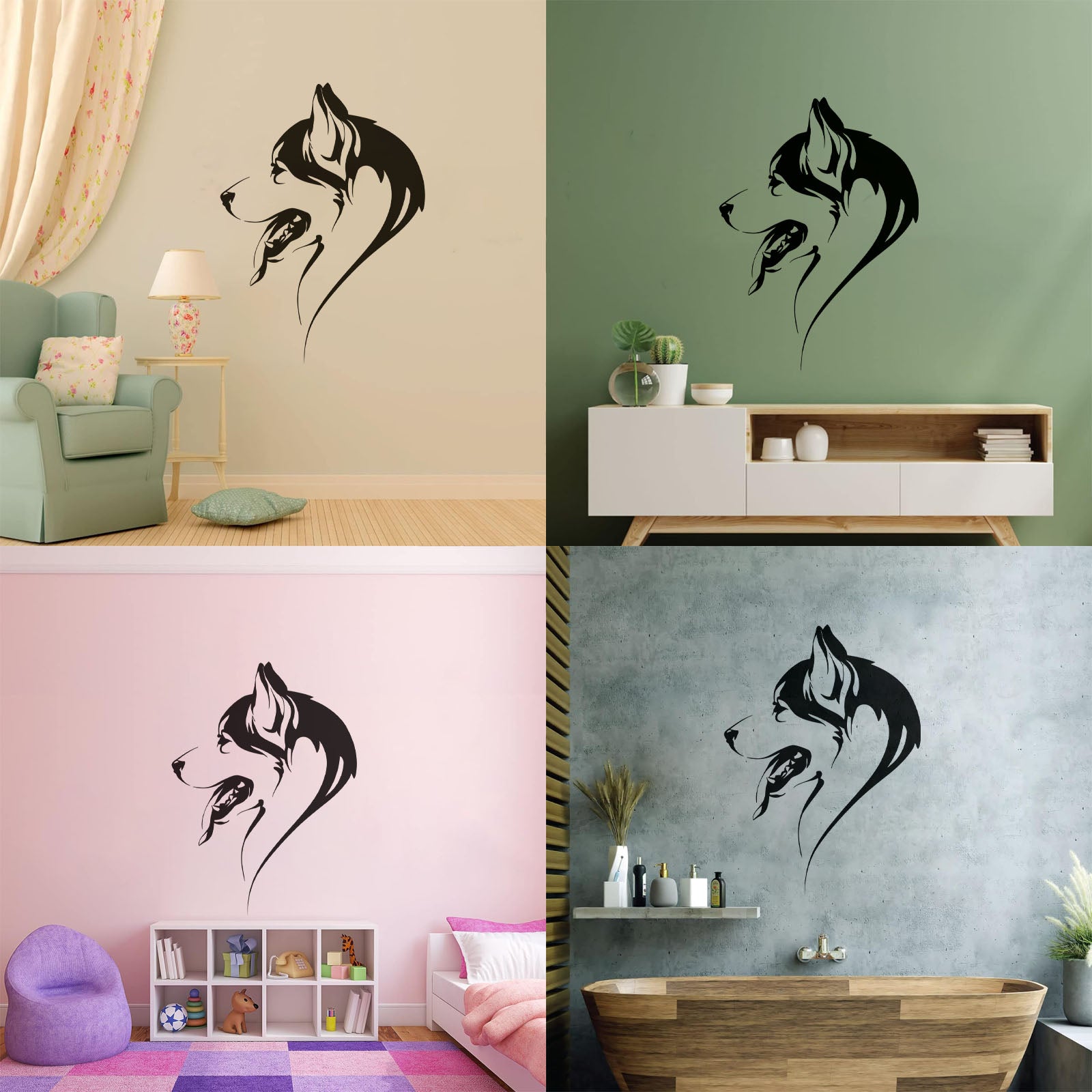 Abstract Dog Head Of Husky Animal Pet Vinyl Wall Decals Self Adhesive