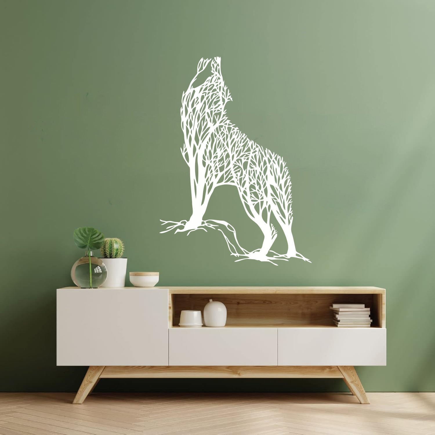 Lettering Stickers Abstract Tree Wild Howling Wolf Predator Animal Multiple Size Options