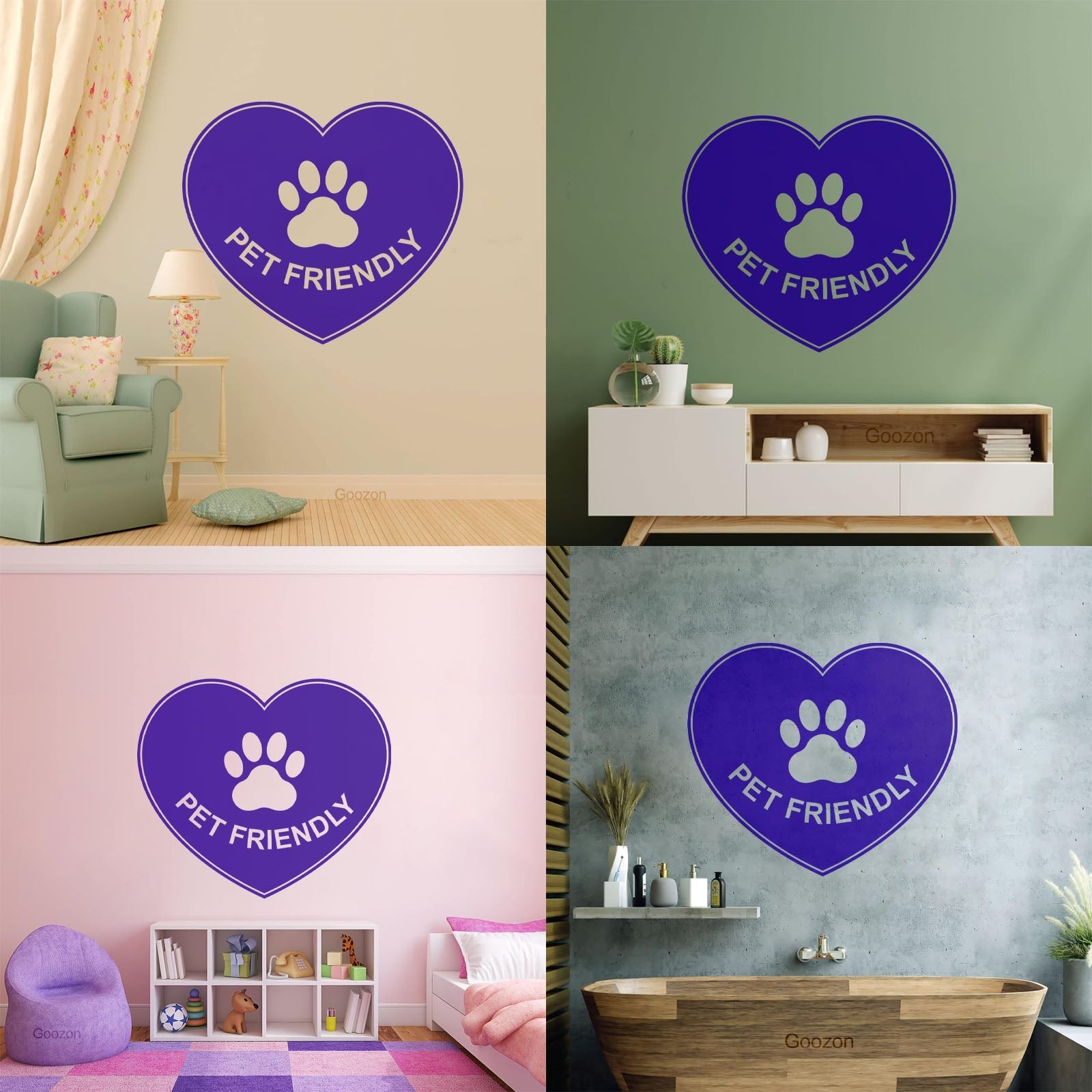 Vinyl Wall Decals Pet Friendly Animals Love Heart Paw Print It Won'T Fall Off
