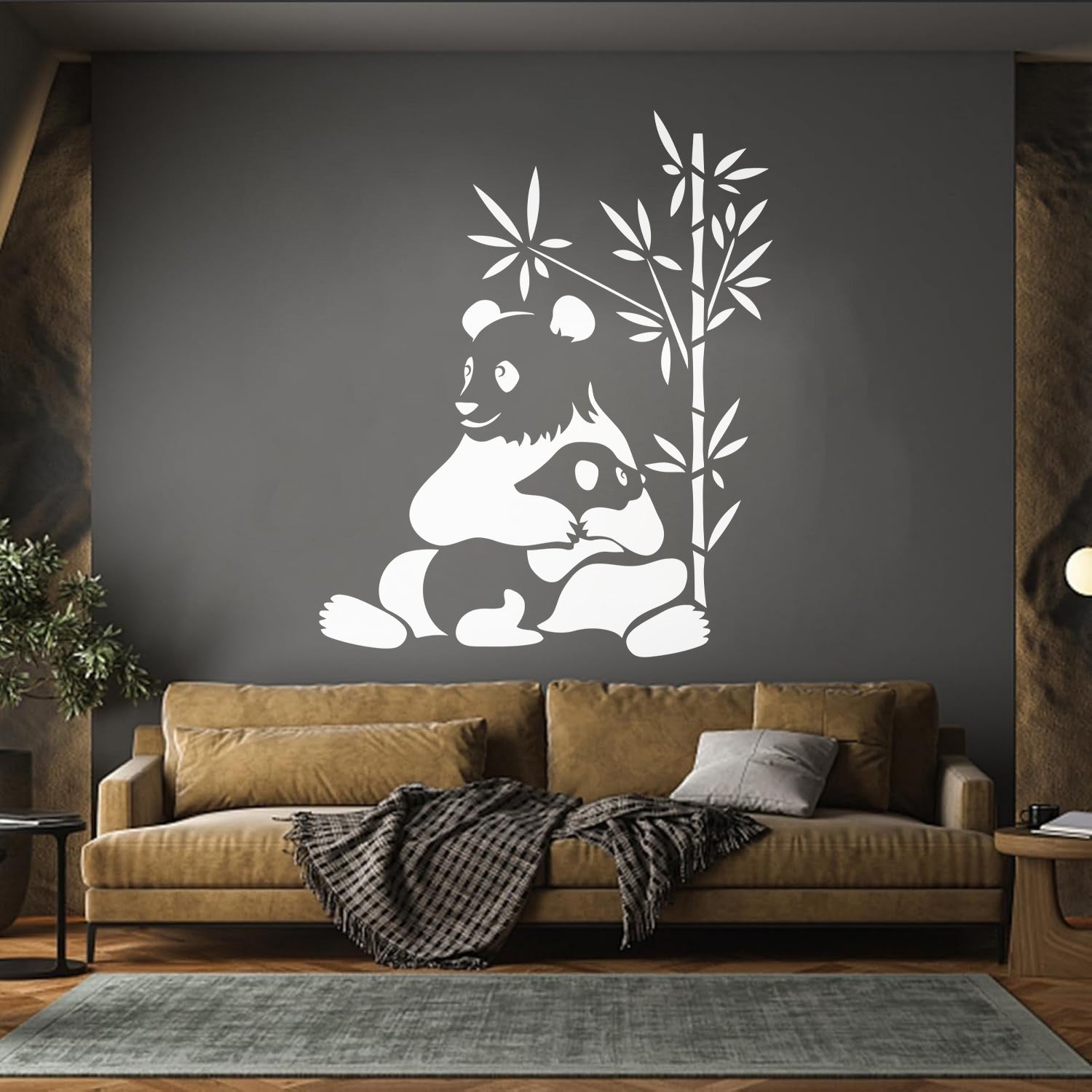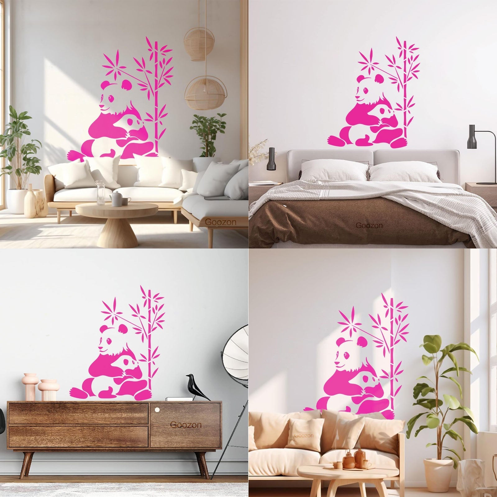 Lettering Stickers Asian Chinese Panda Bears Family Animals Do Not Damage The Wall Surface