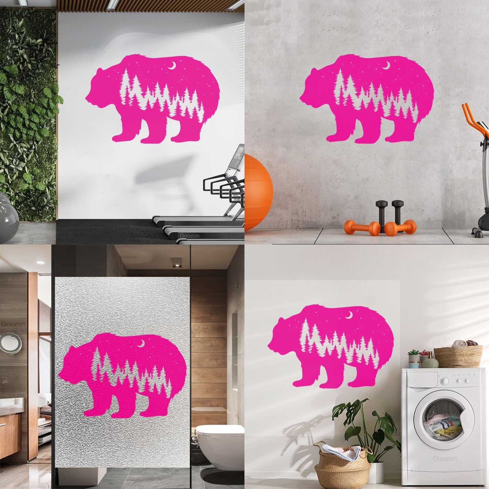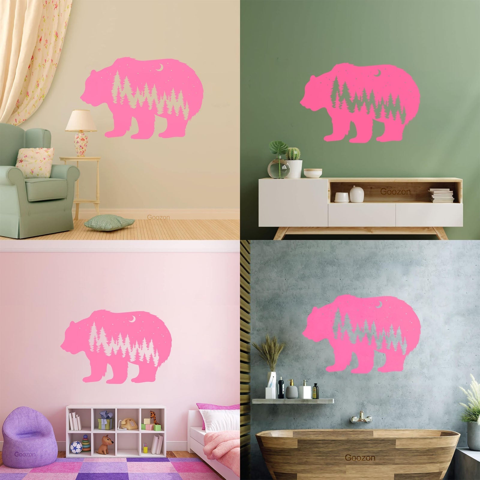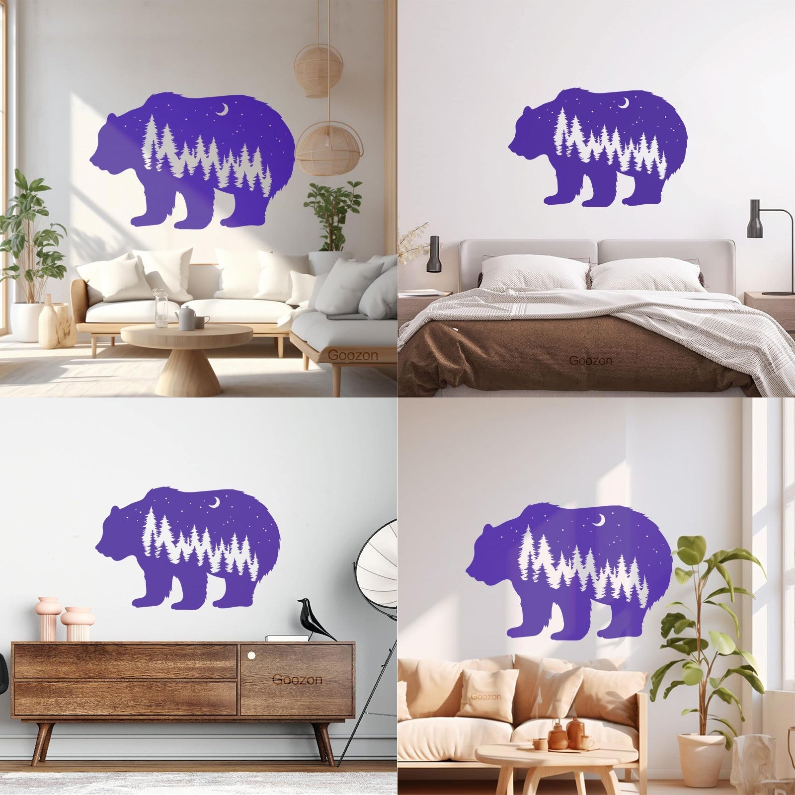 Fine Carving Stickers Bear Animal Moon Night Stars Waterproof