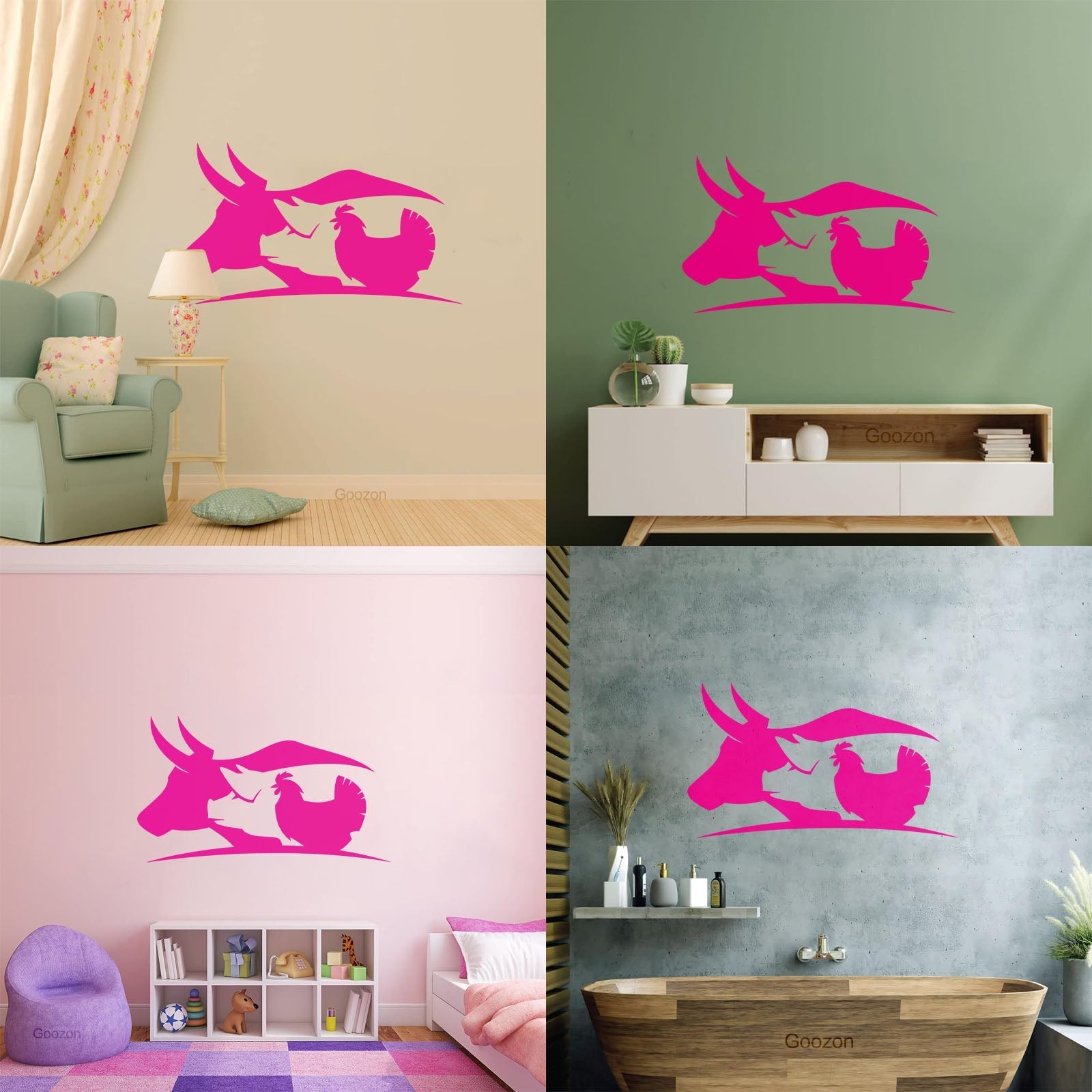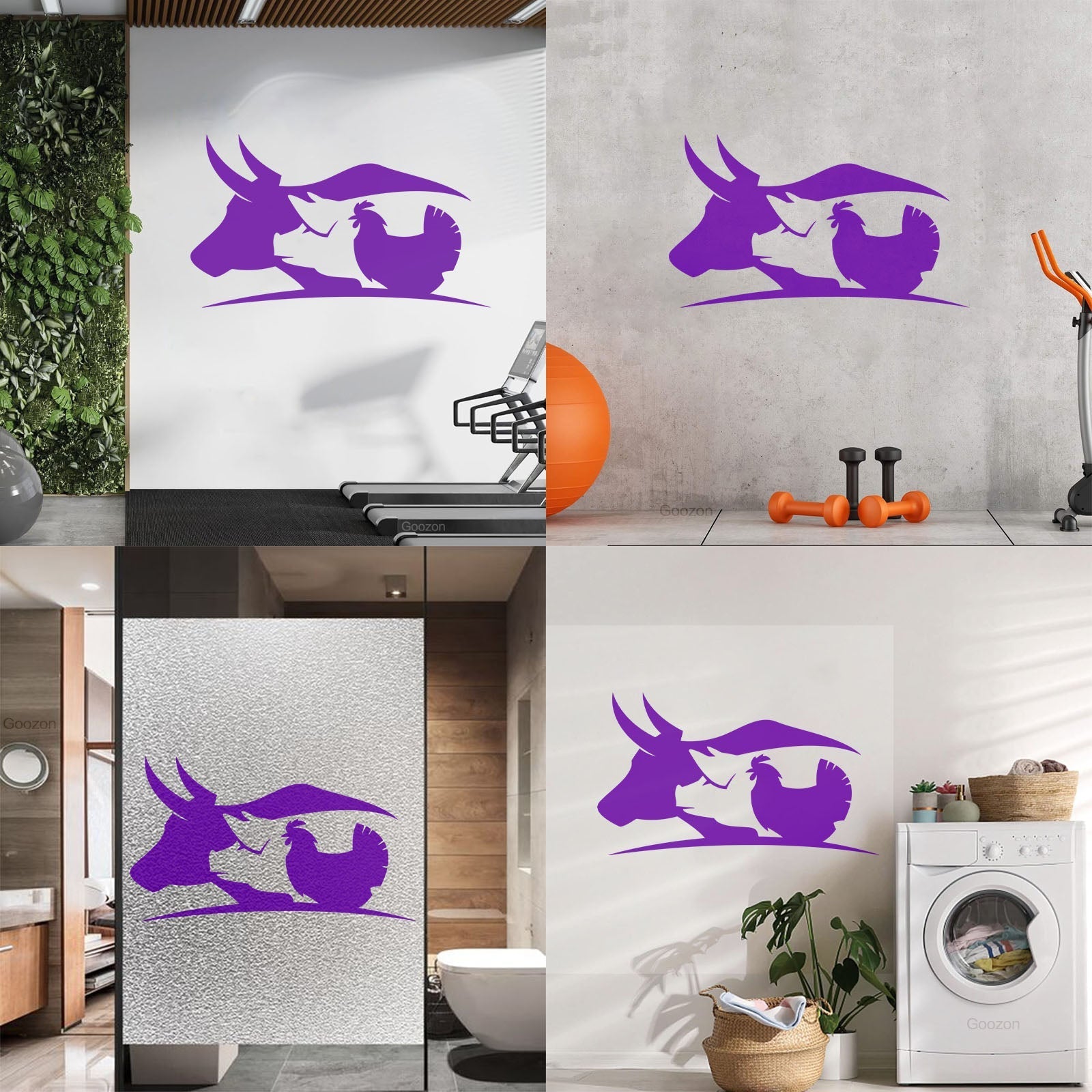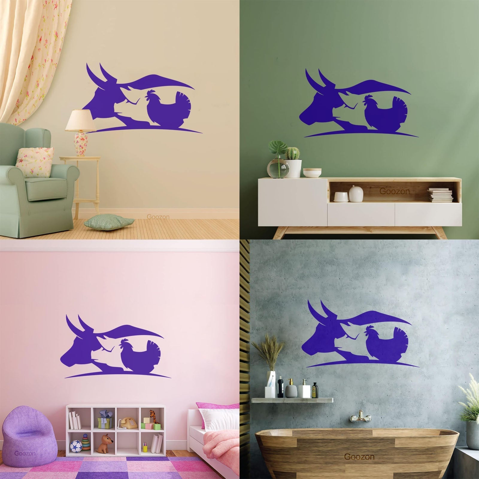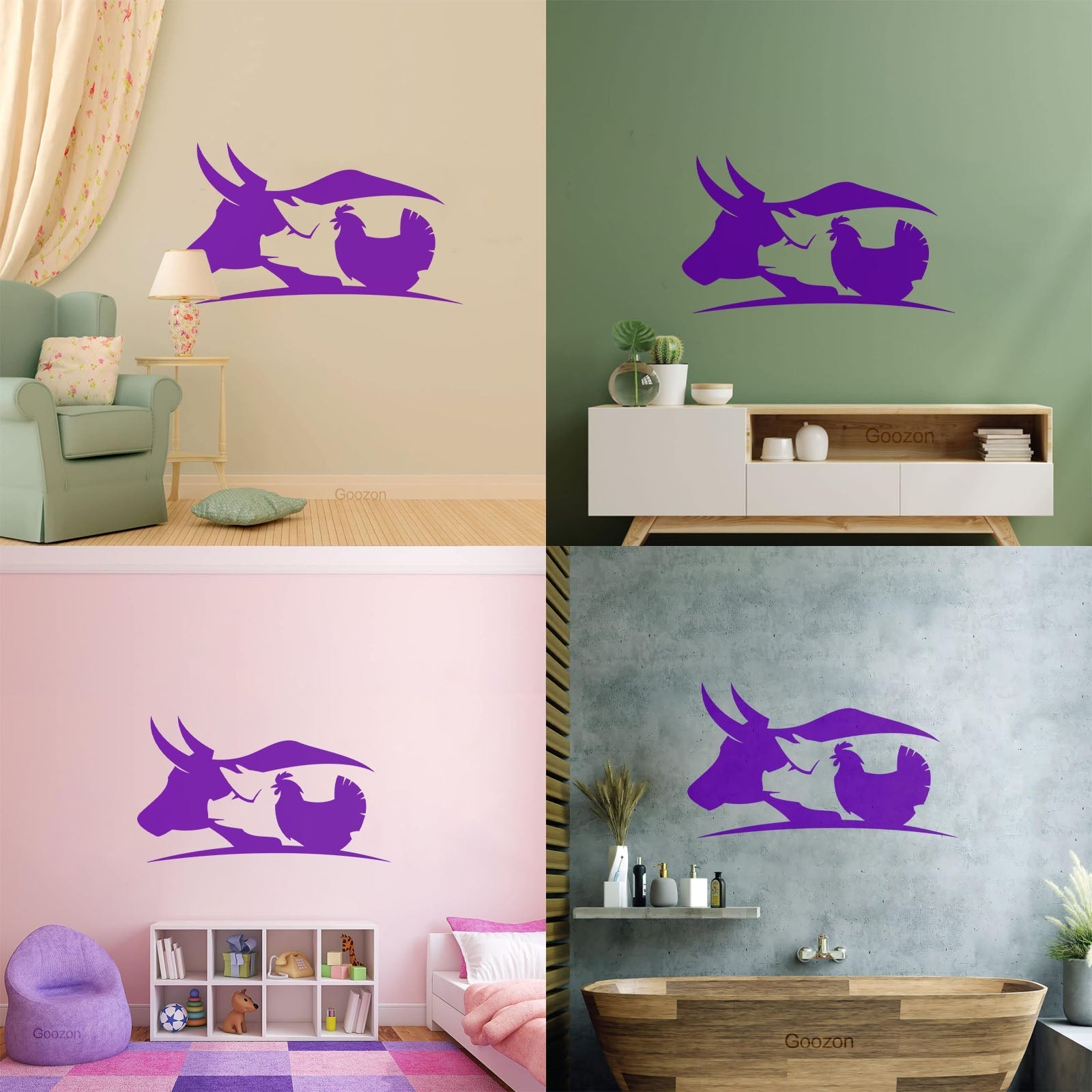 Fine Carving Decals Farm Animals Village Cow Pig Chicken Butcher Glass Stickers