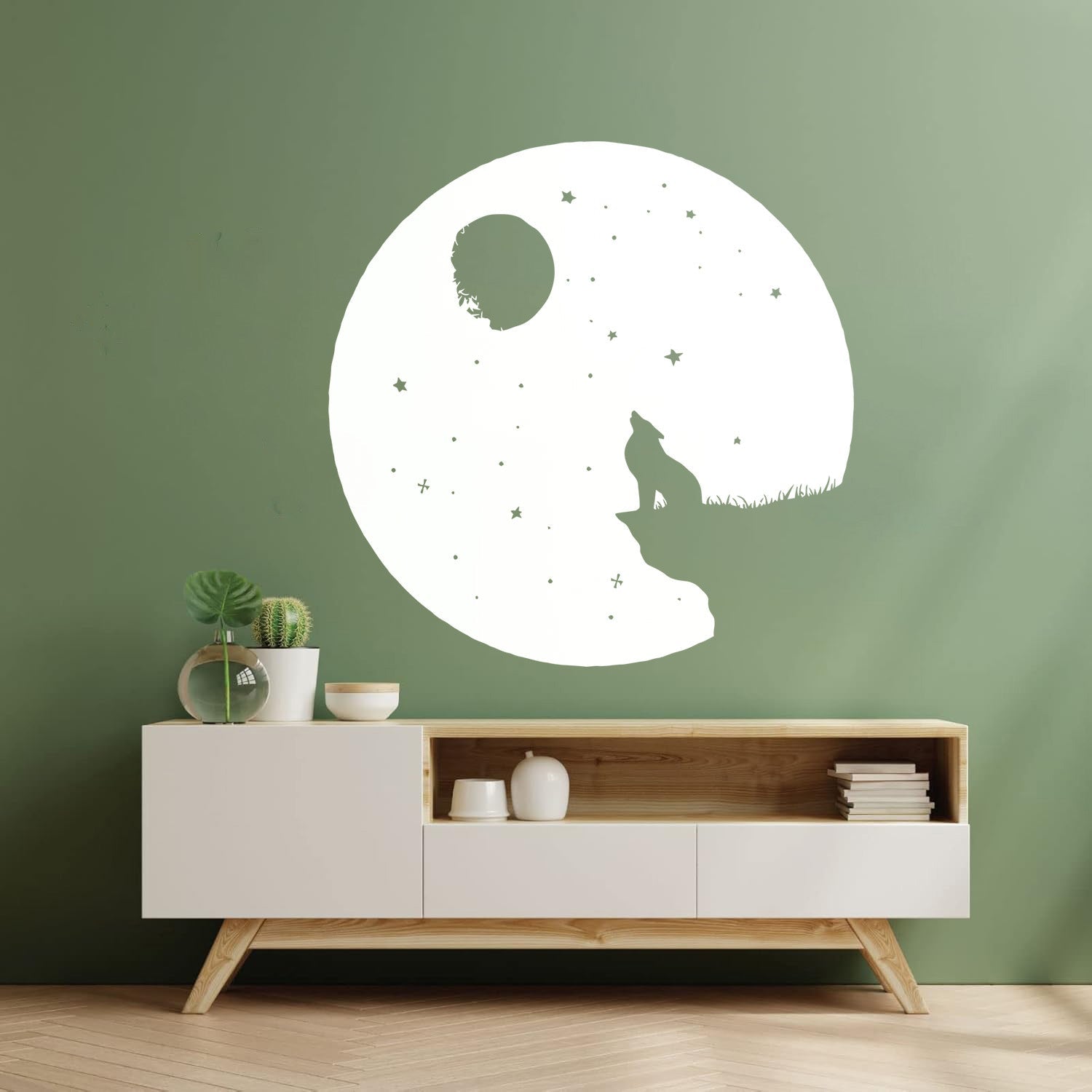 Full Moon Howling Wolf Animal Predator Night Vinyl Wall Stickers Store Decoration