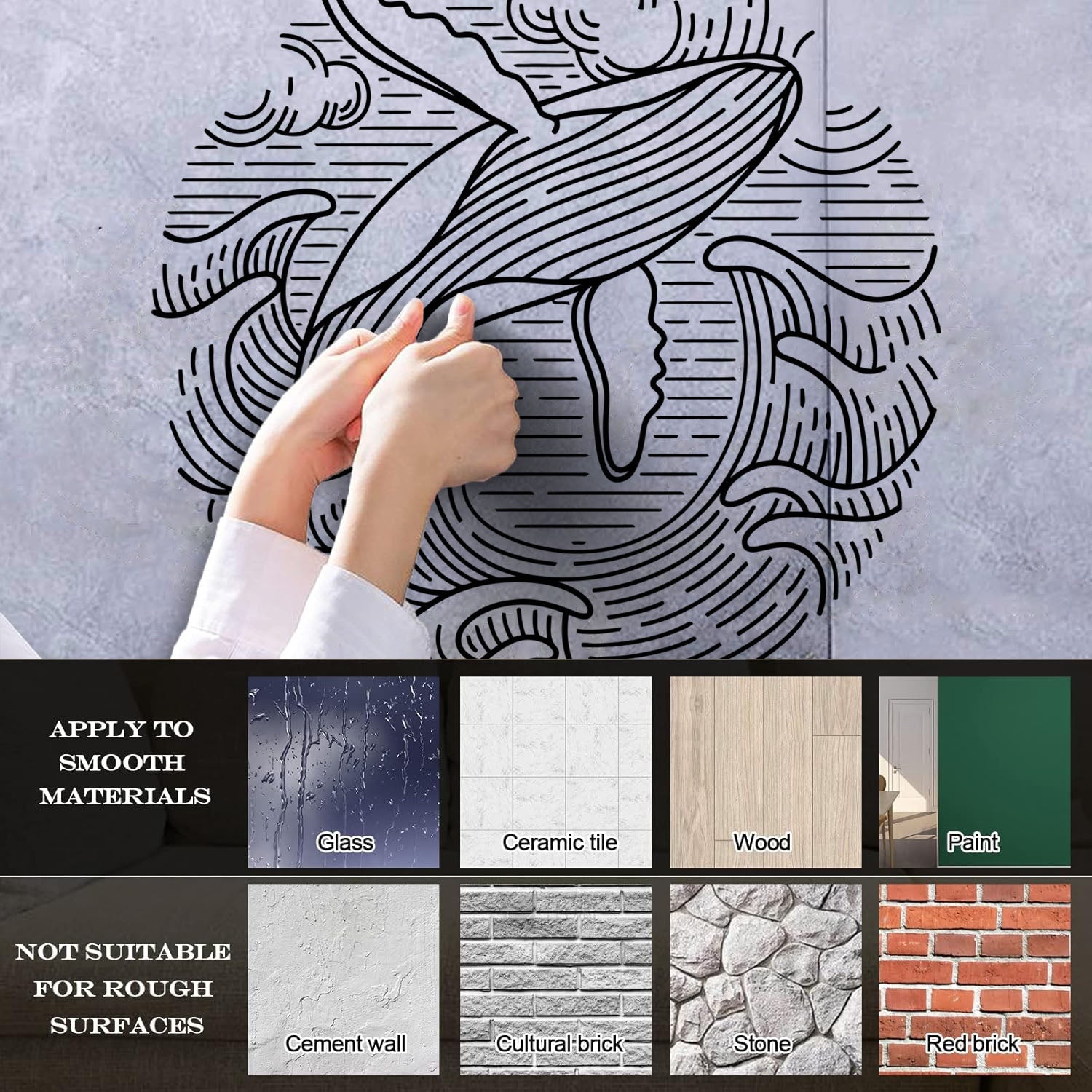 Gently press the decal area to secure it firmly to the wall.