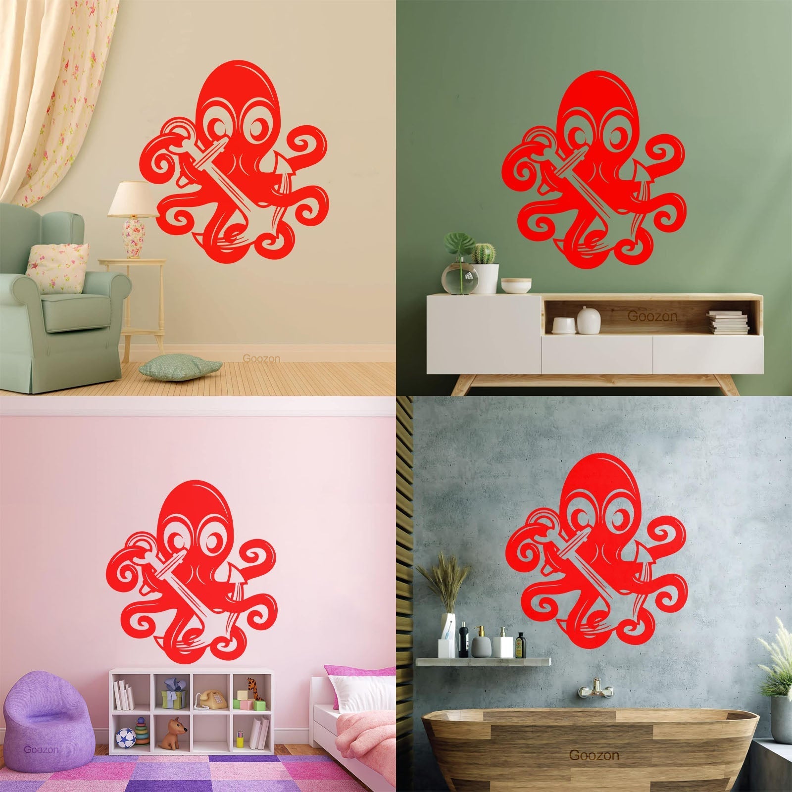 Vinyl Art Sticker Octopus Ocean Sea Marine Animal Anchor Car Body Decoration