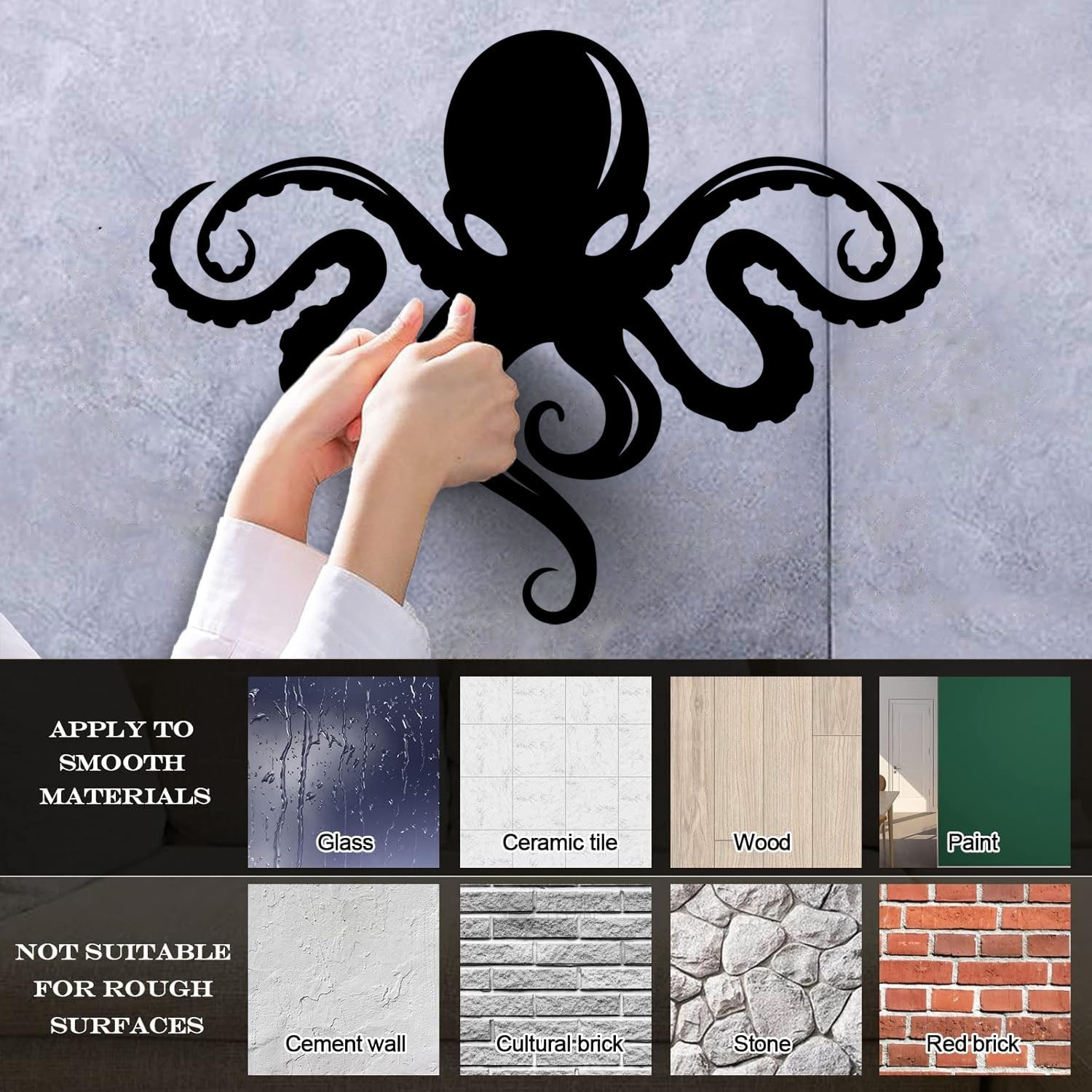 Gently press the decal area to secure it firmly to the wall.