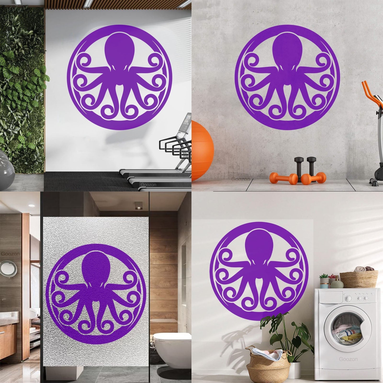 Lettering Decals Octopus Ornament Ocean Sea Marine Animal Glass Stickers