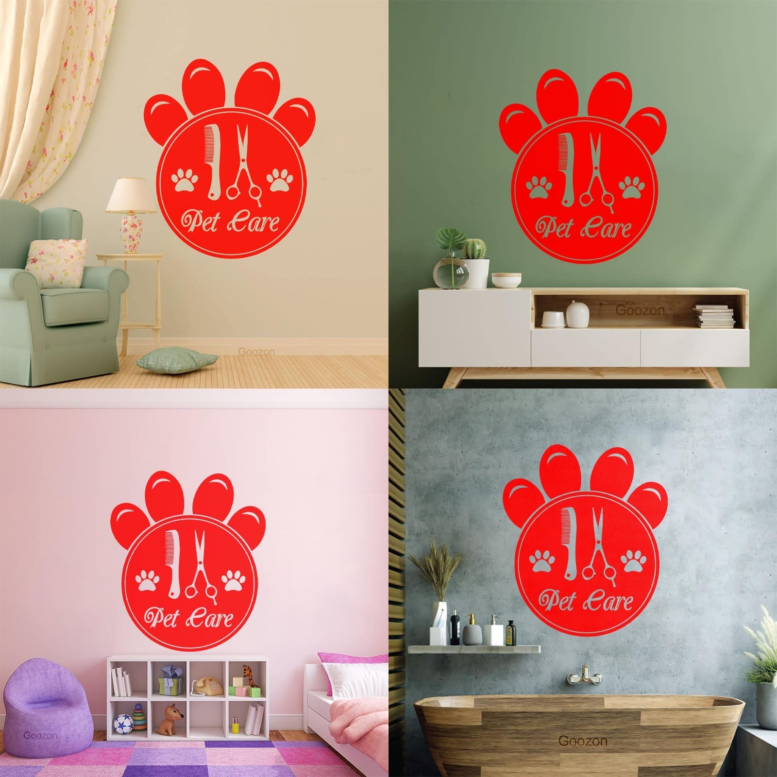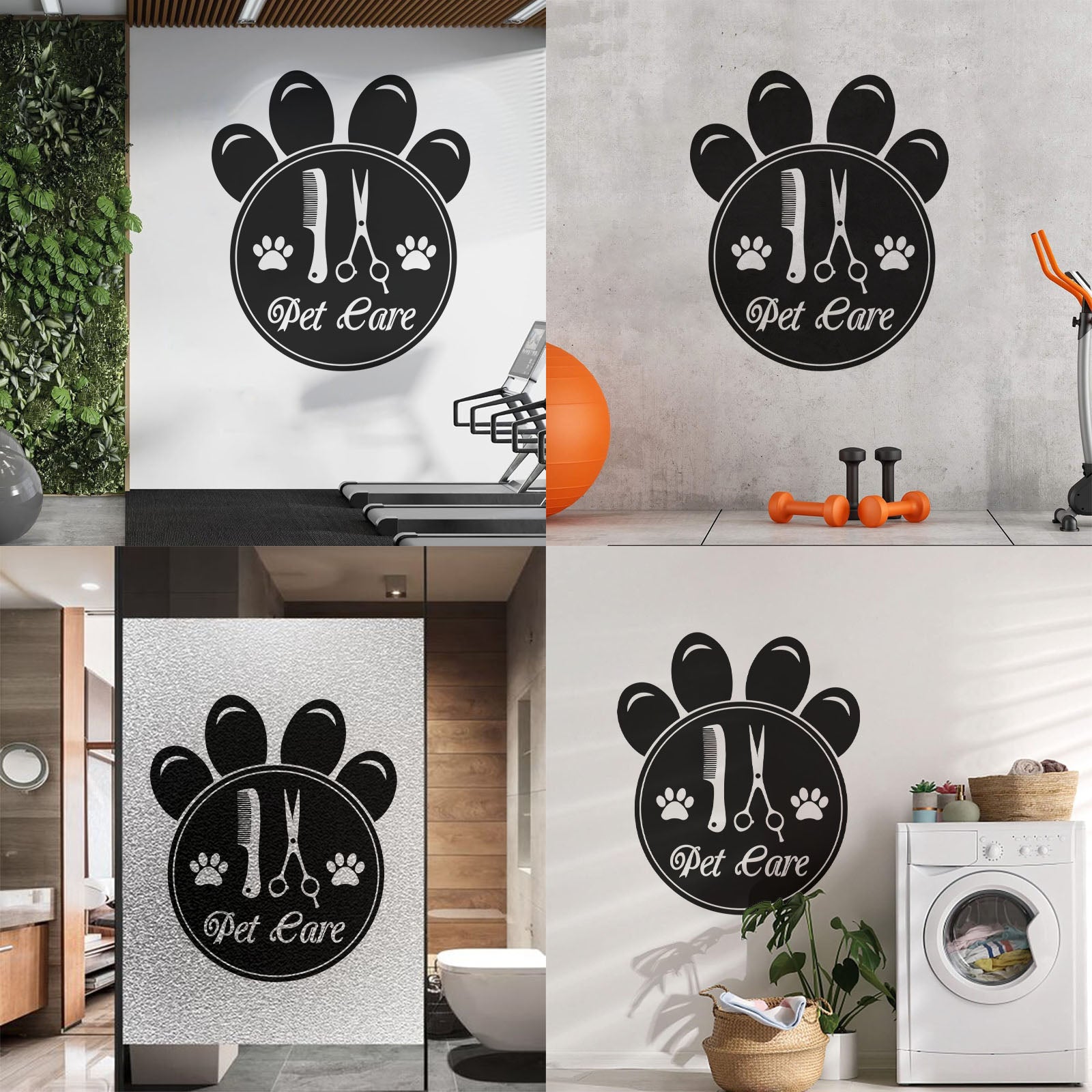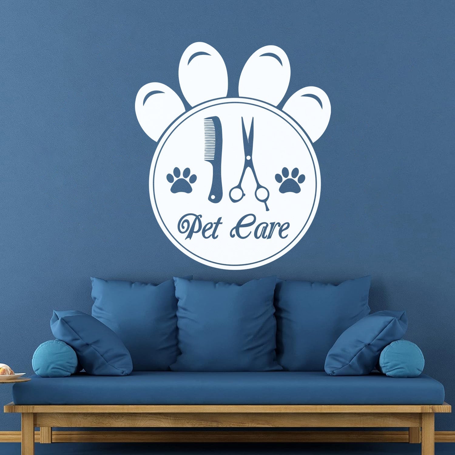 Mural And Wall Vinyl Decal Pet Care Home Animals Paw Prints Comb Scissors Tattoo Culture