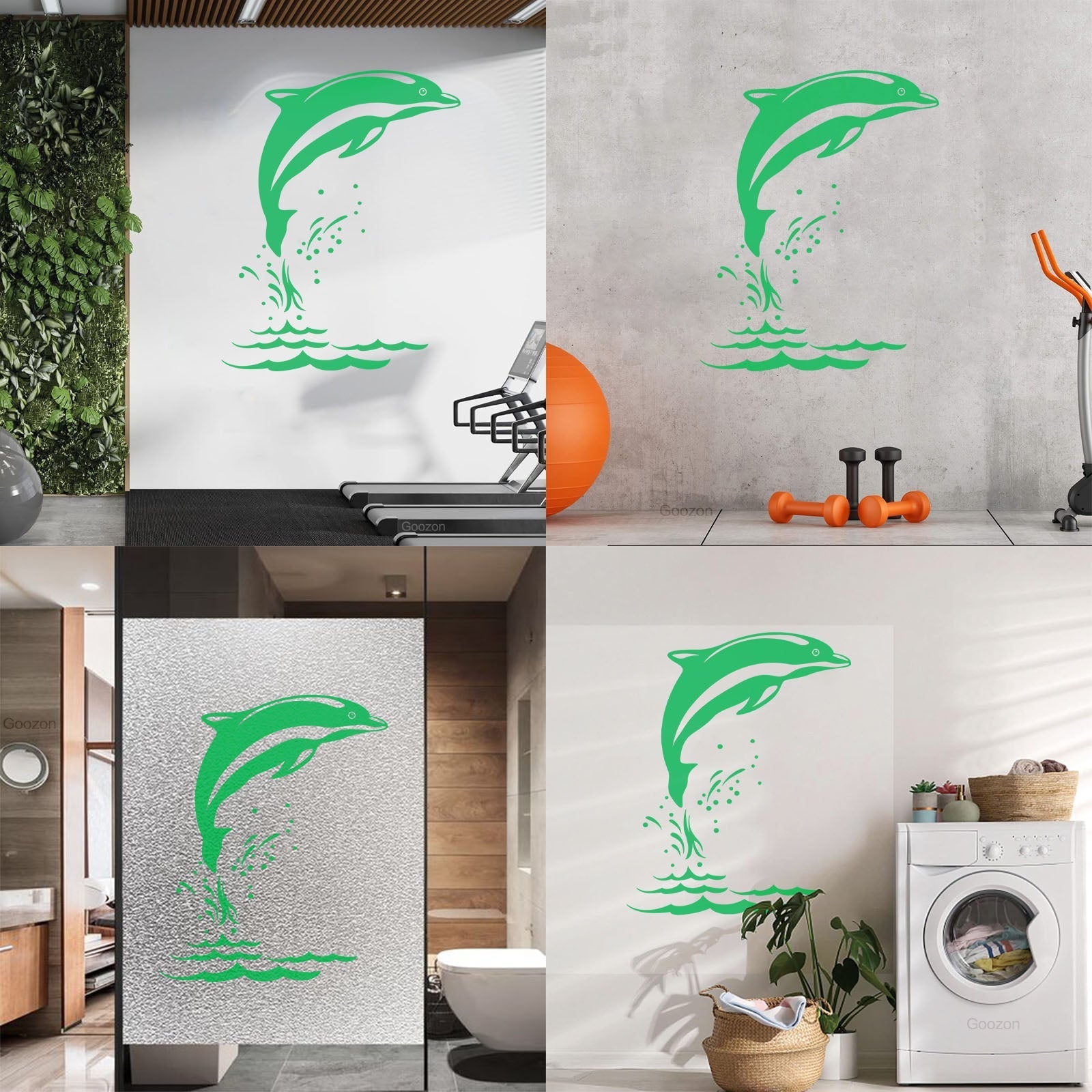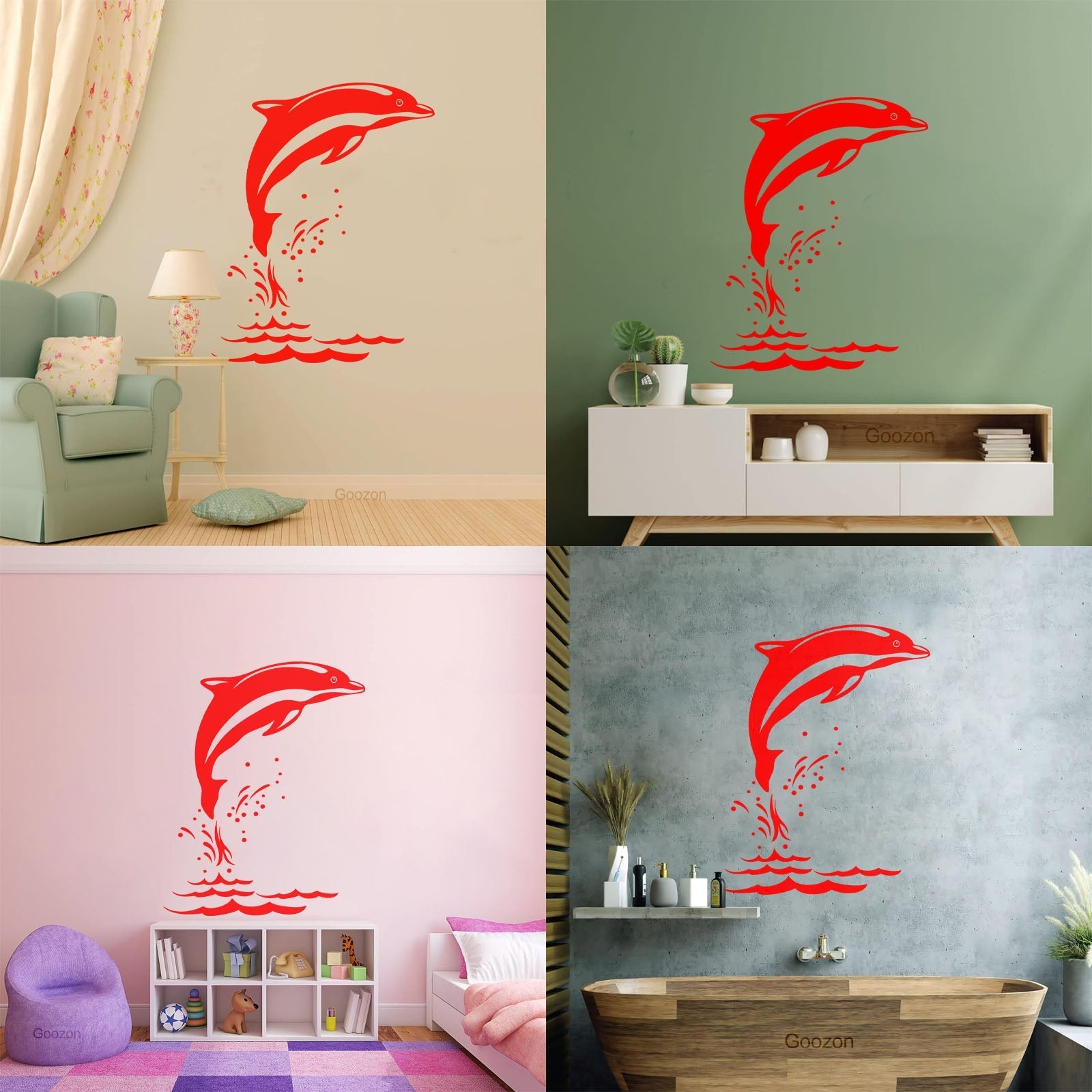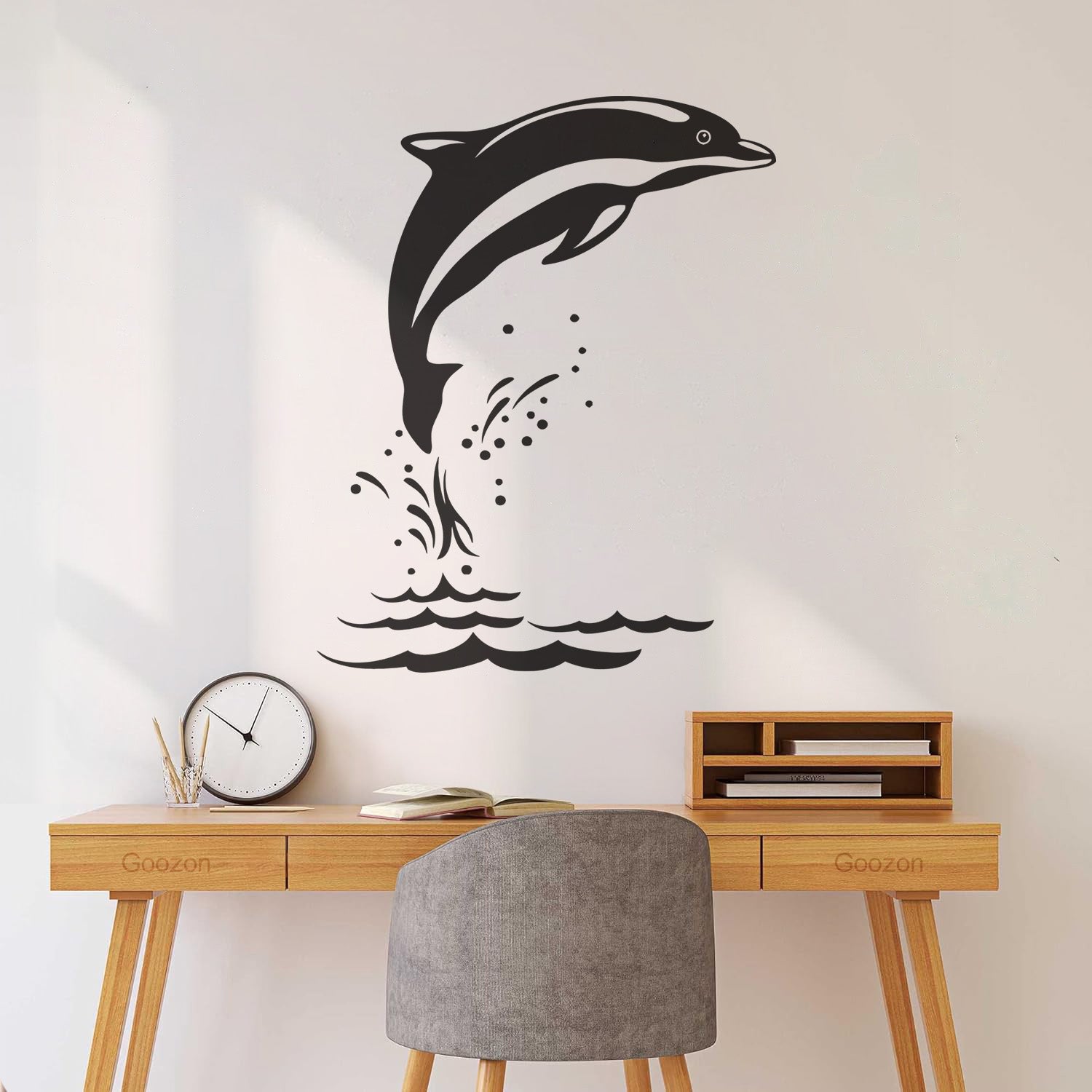 Mural And Wall Vinyl Decal Sea Animal Cartoon Dolphin Waves Removable Without Leaving Glue