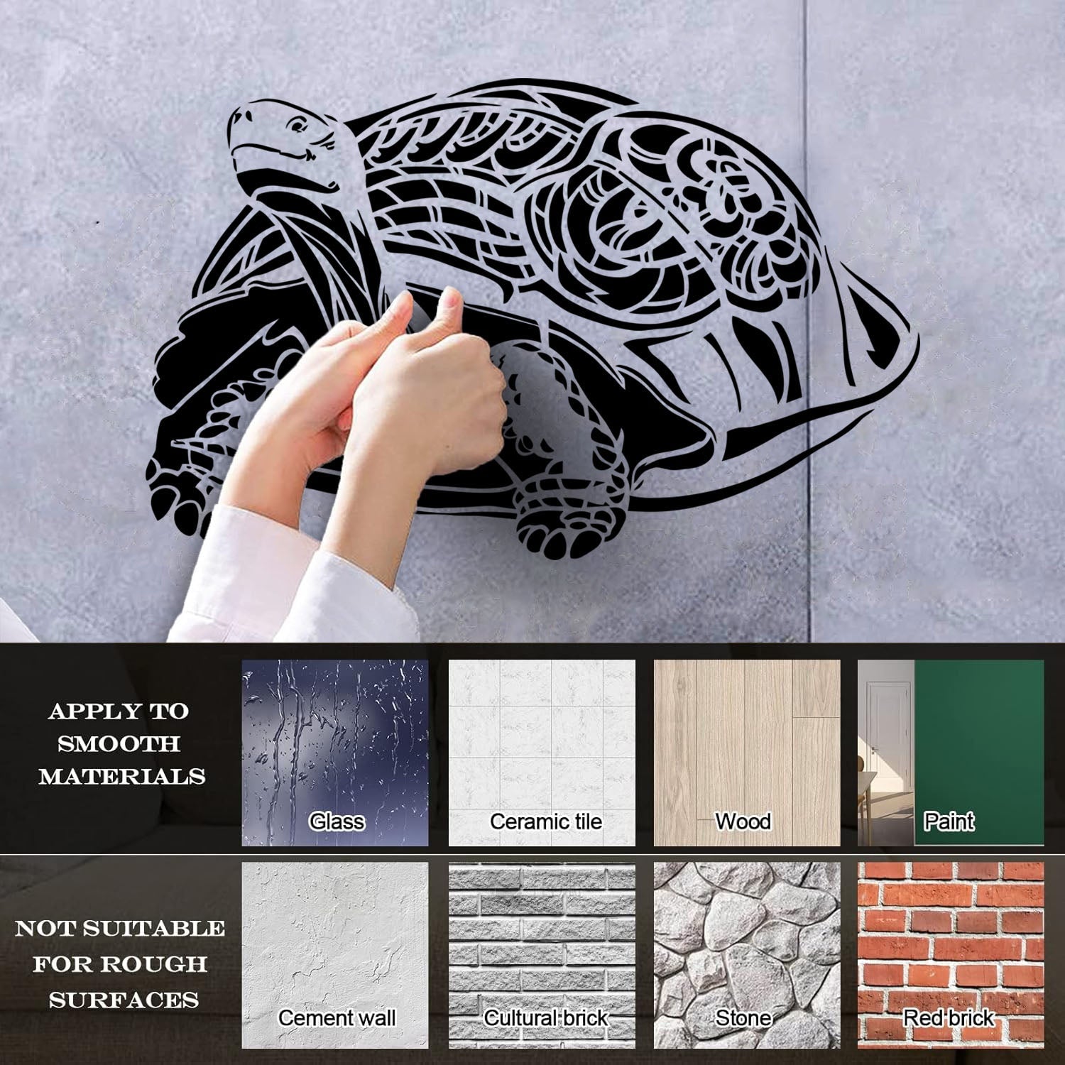 Gently press the decal area to secure it firmly to the wall.