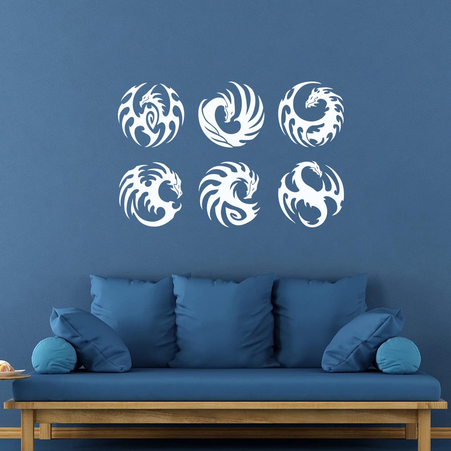 Mural And Wall Vinyl Decal Tattoo Set Round Tribal Dragon Mythology Animals Multiple Size Options