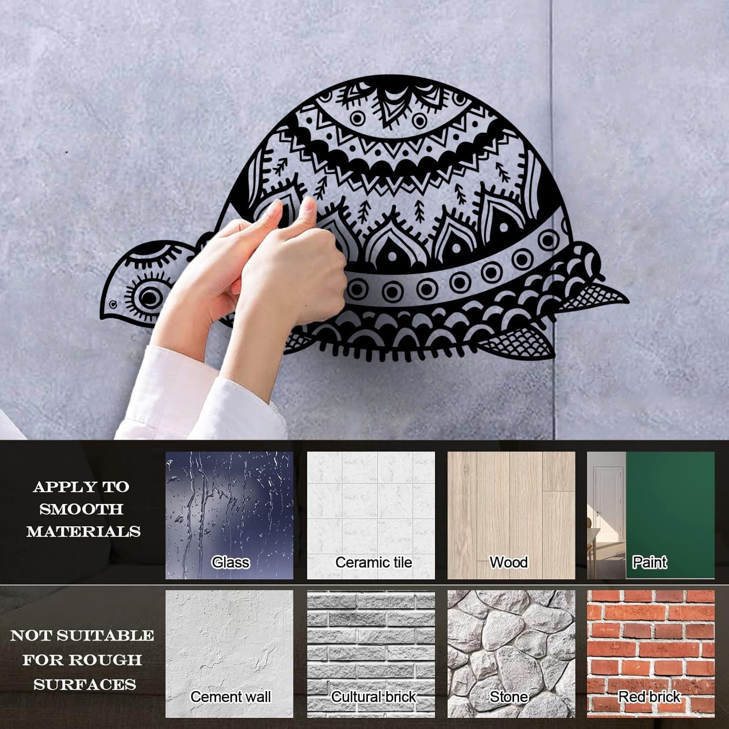 Gently press the decal area to secure it firmly to the wall.