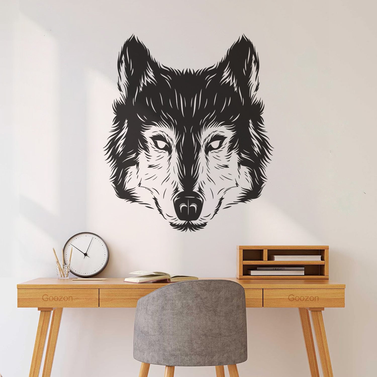 Lettering Decals Wolf Head Beautiful Animal Zoo Tribal Glass Stickers