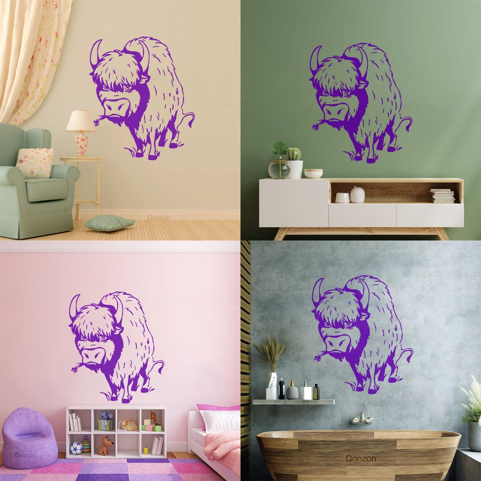 Mural And Wall Vinyl Decal Bull Animal Cow Buffalo Horns Hoof It Won'T Fall Off