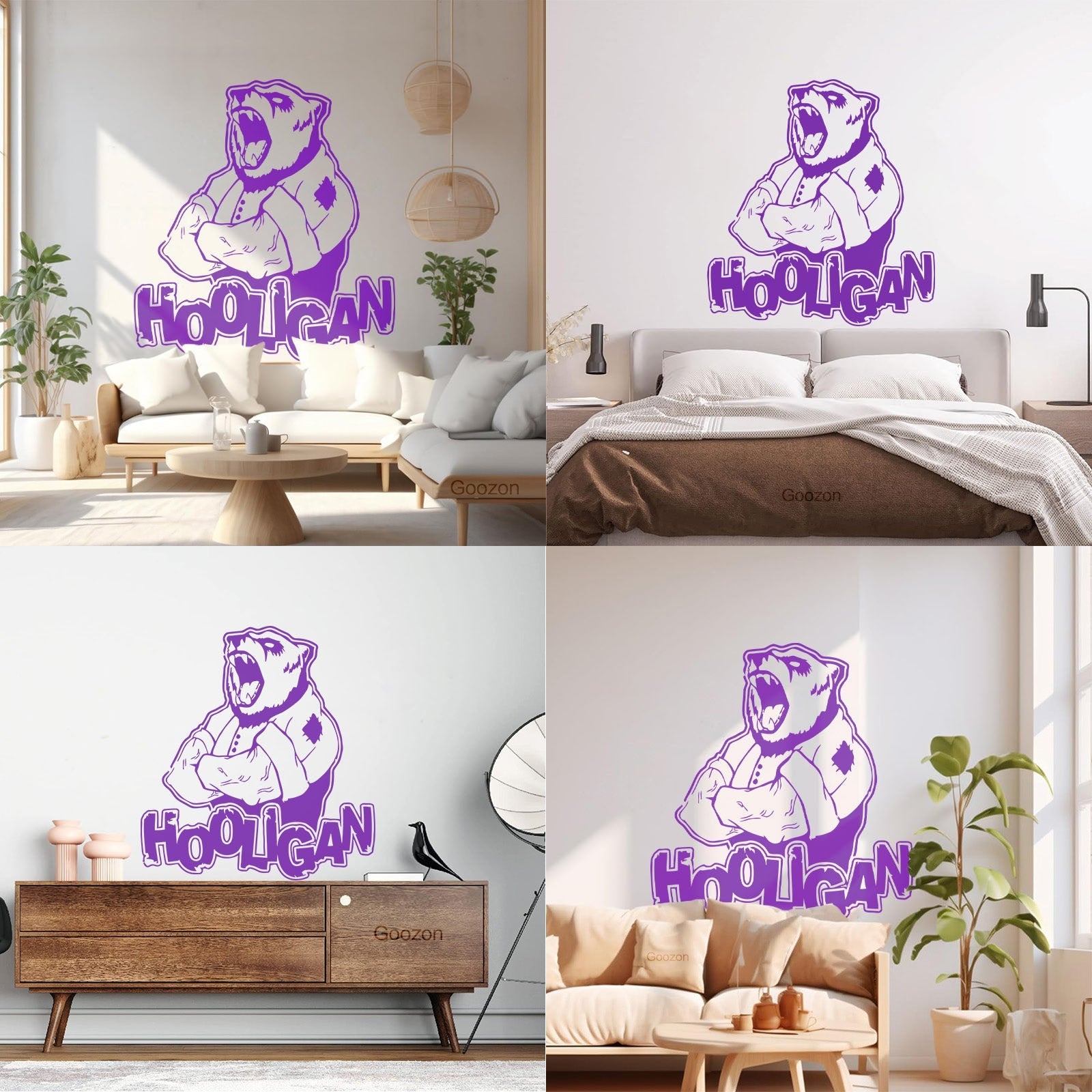 Vinyl Art Sticker Ferocious Bear Head Animal Hooligan Man Art Mural Painting