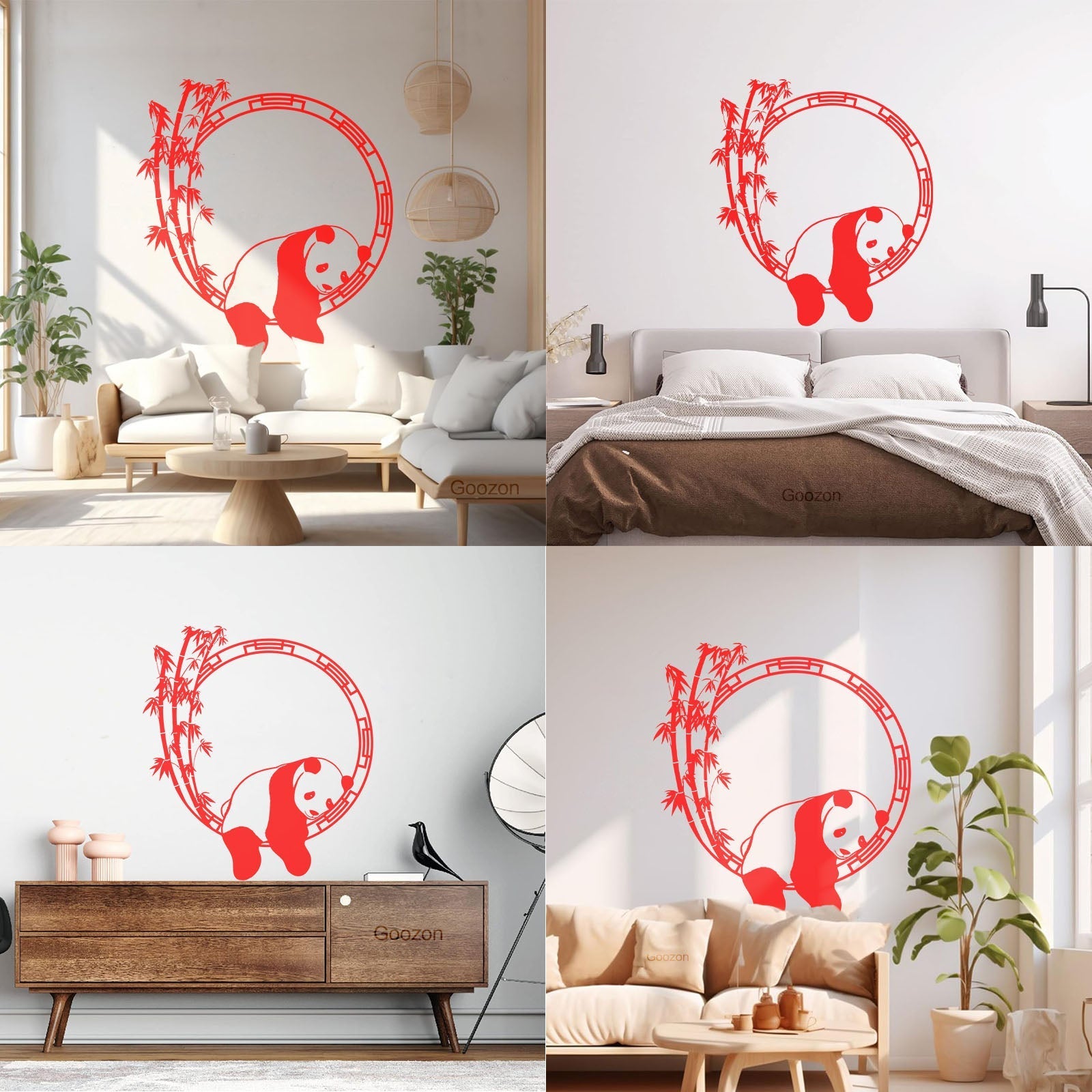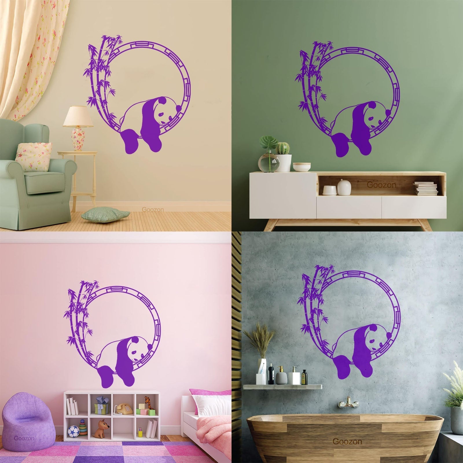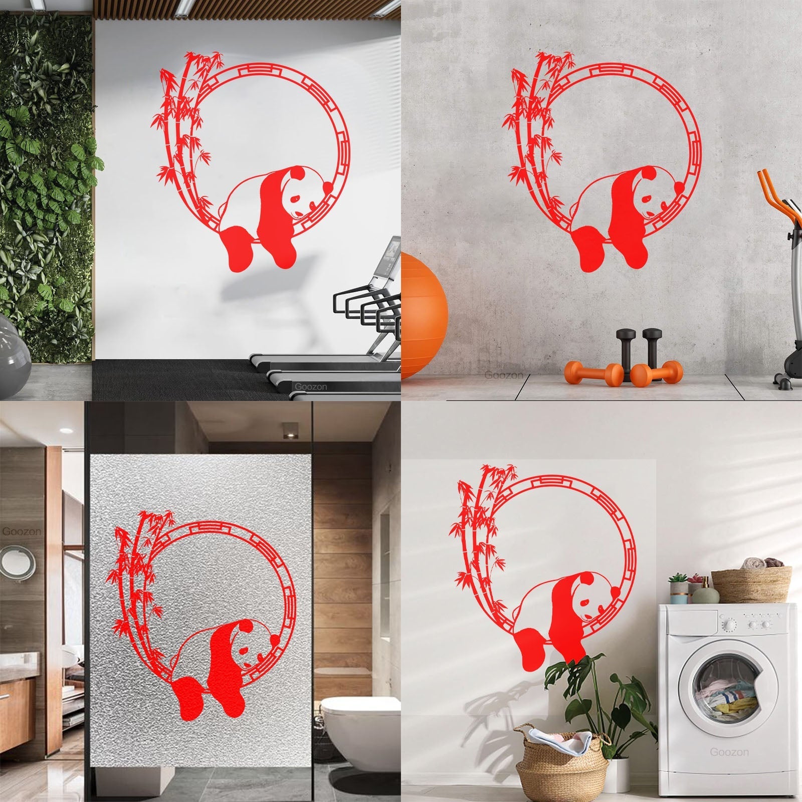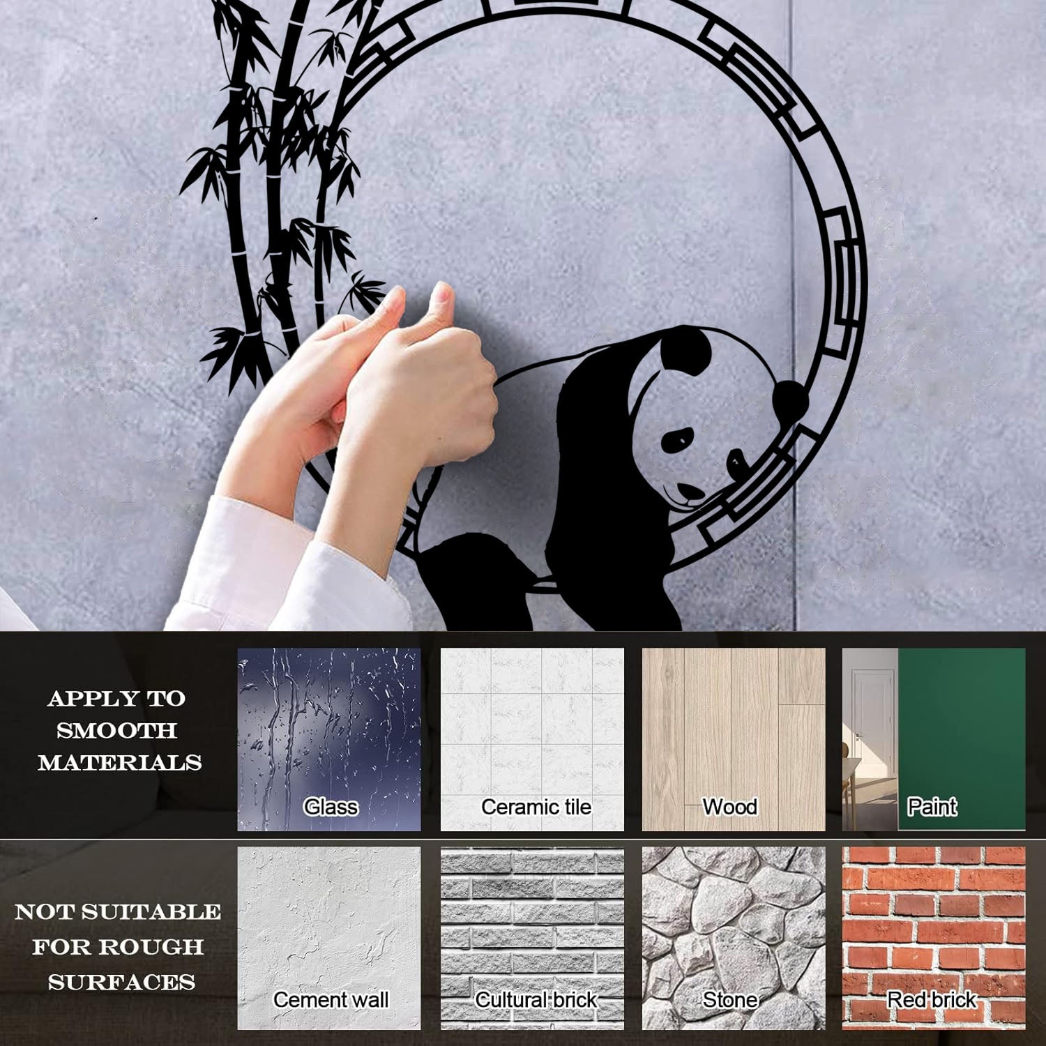Fine Carving Stickers Funny Animal Panda Bamboo Japanese Removable Without Leaving Glue