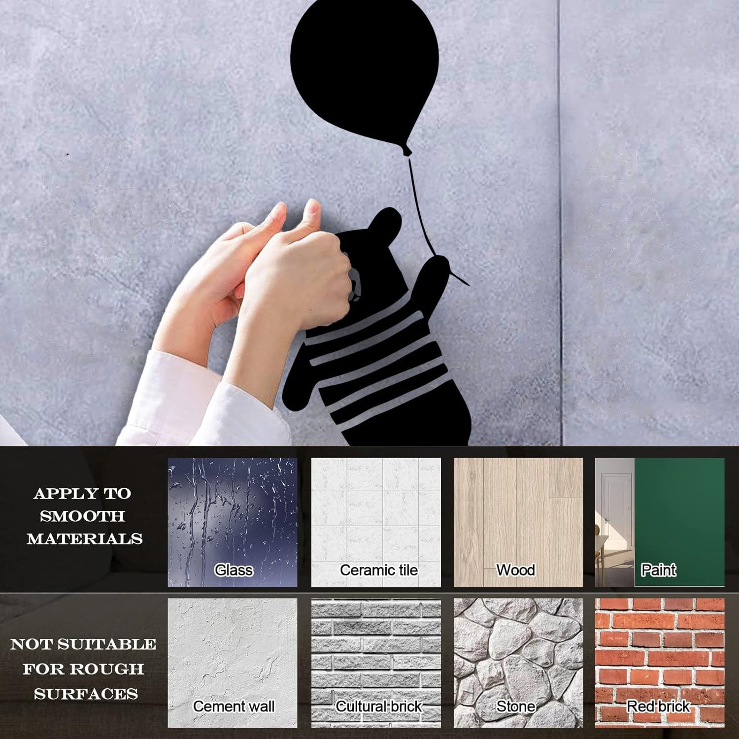 Gently press the decal area to secure it firmly to the wall.