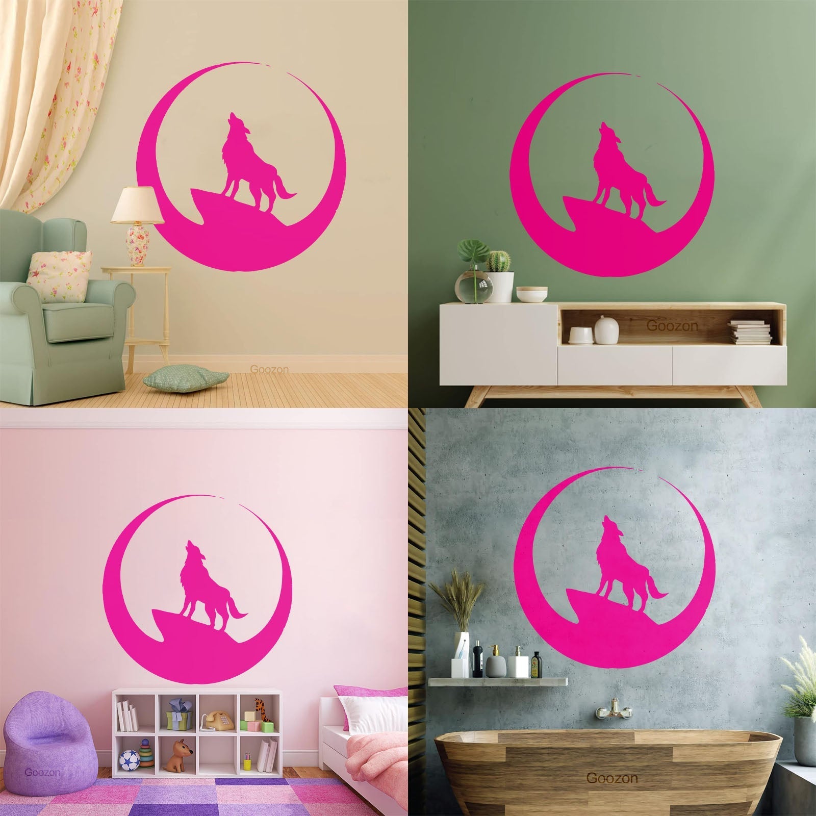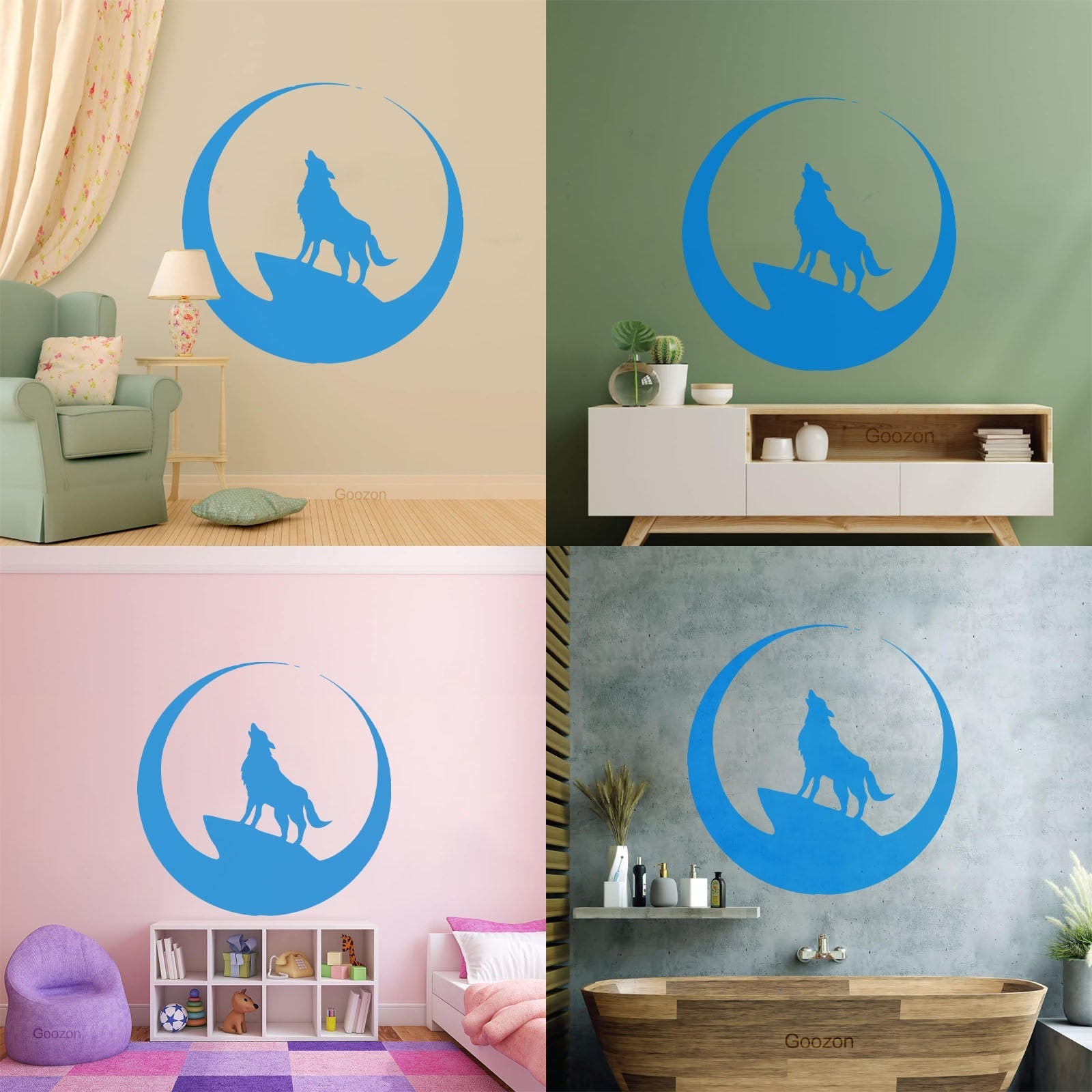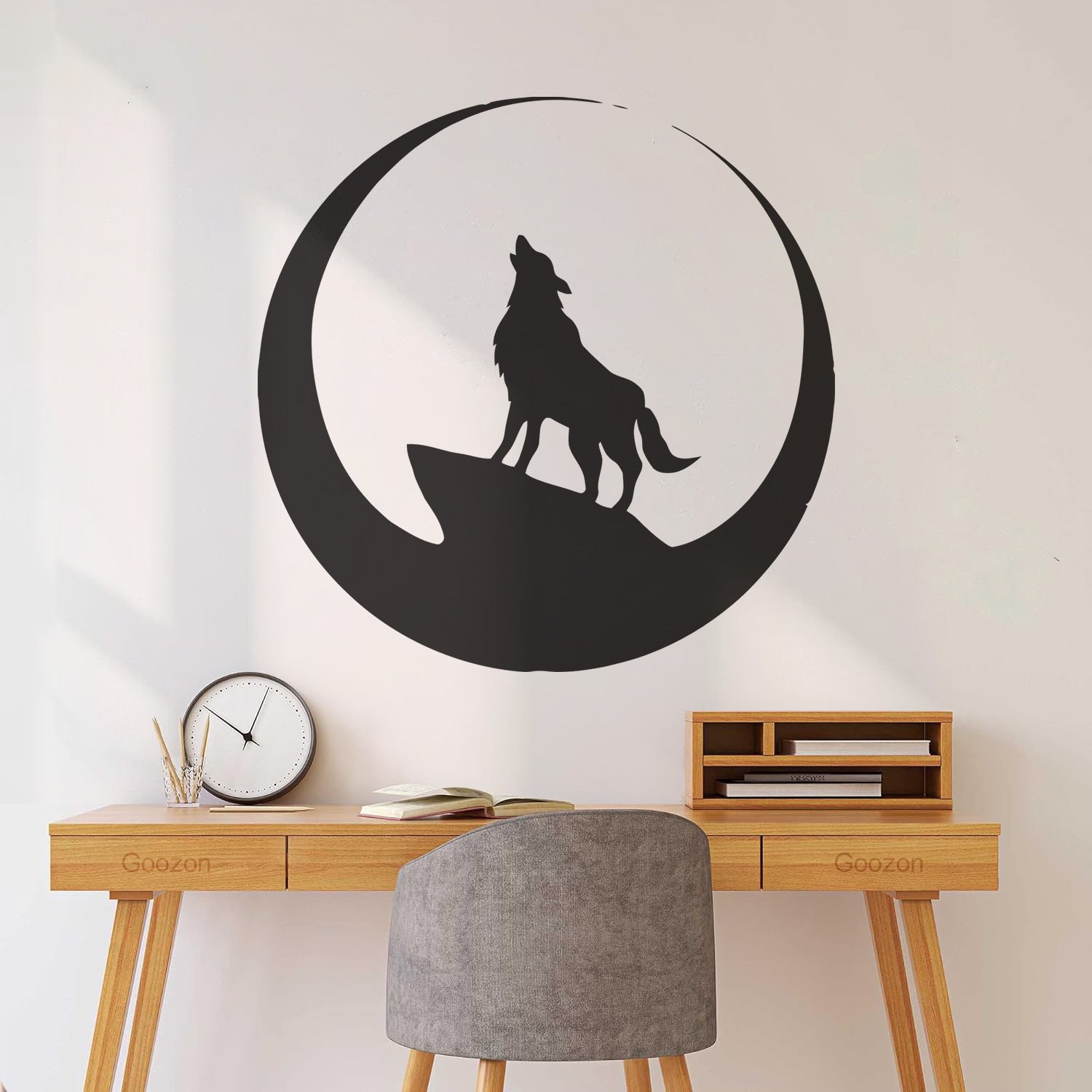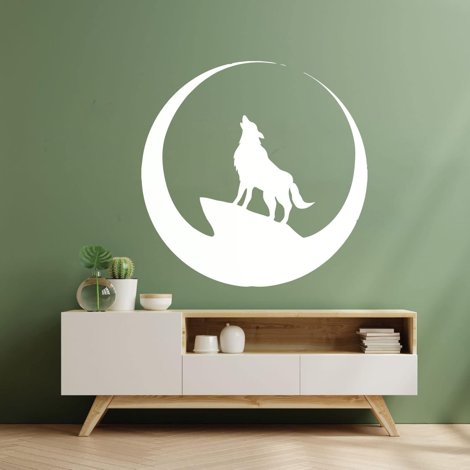 Wolf Full Moon Night Animal Lettering Decals Art Mural Painting