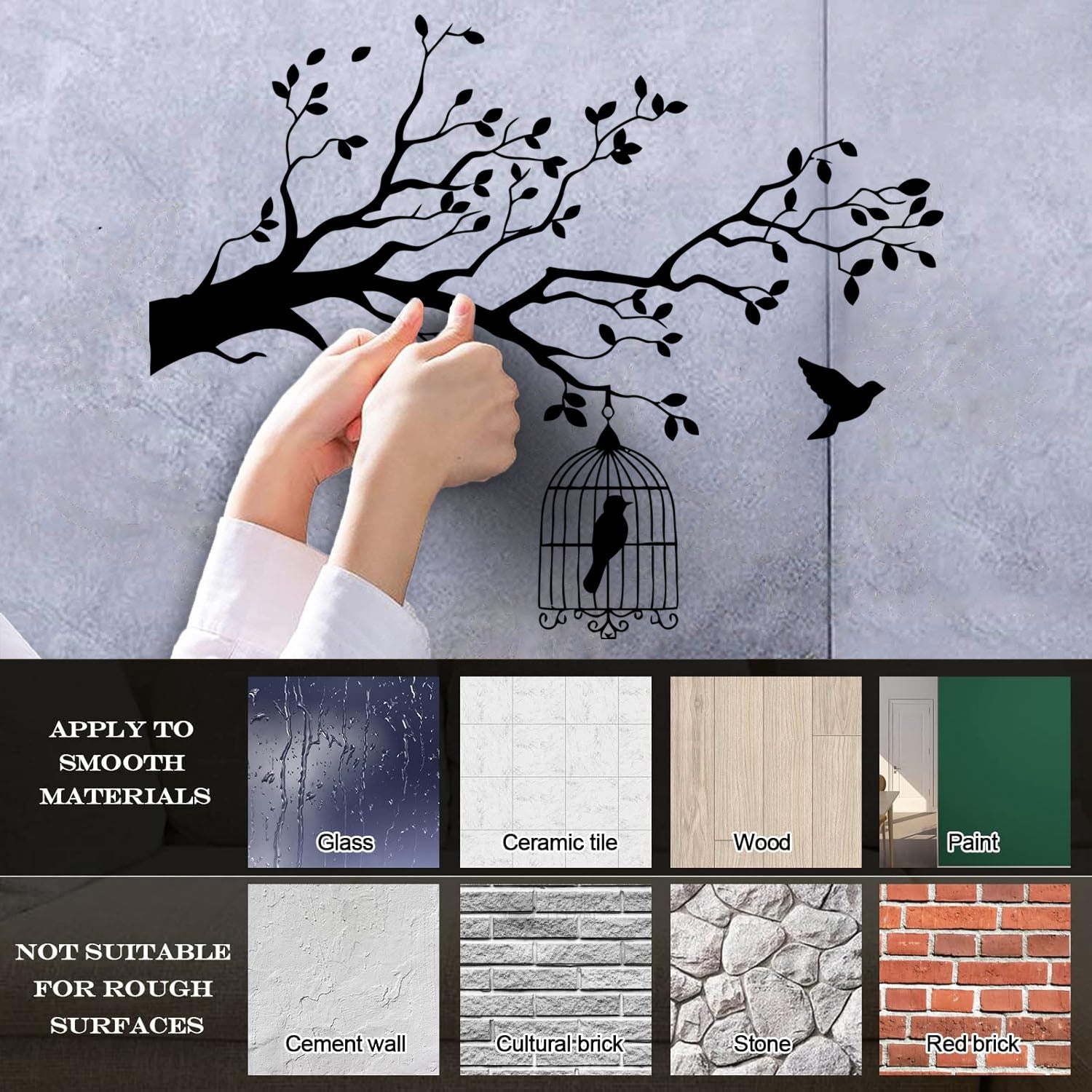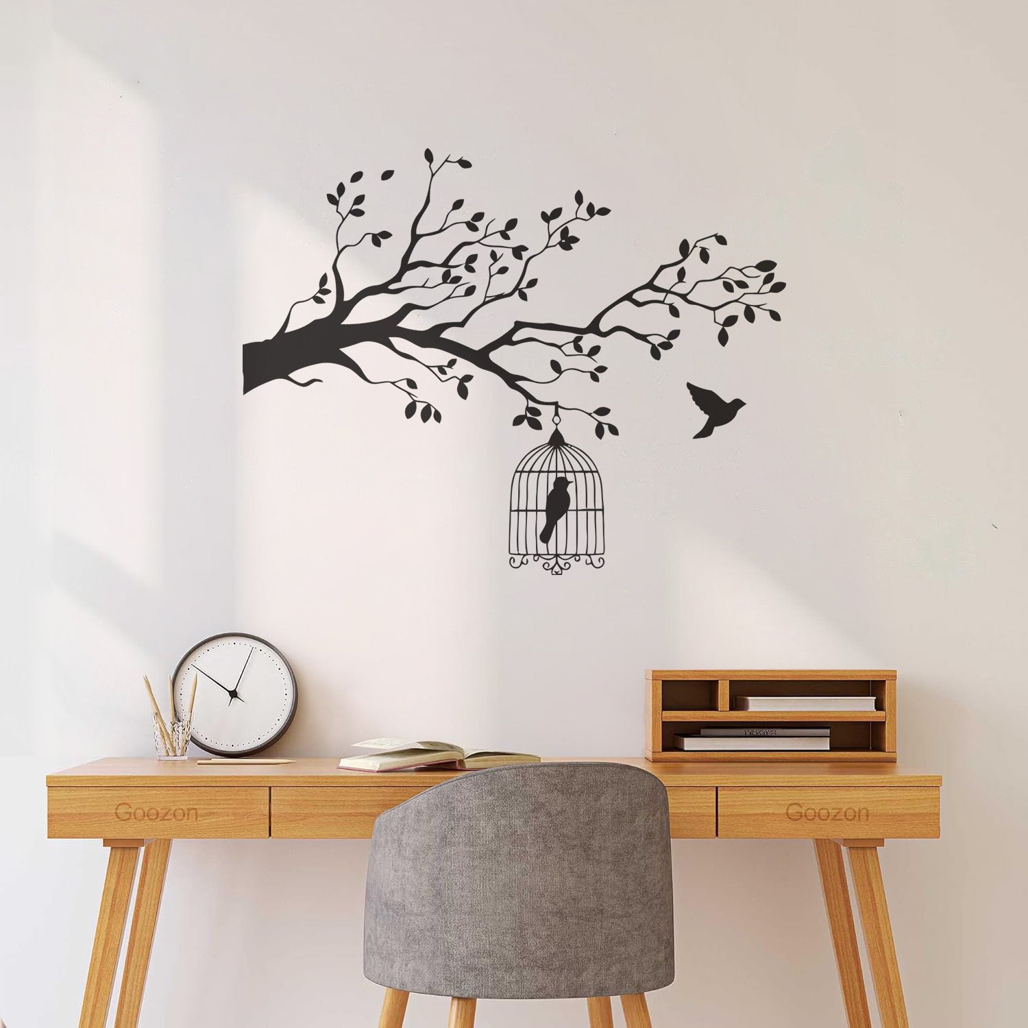 Wall Vinyl Sticker Decor Animals And Birds Caged Bird Tree Branch Let Bird Free Car Body Decoration