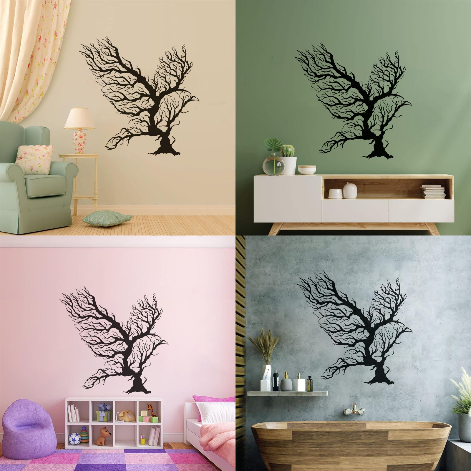 Abstract Bird Branches Tribal Home Idea Engraving Stickers Removable Without Leaving Glue