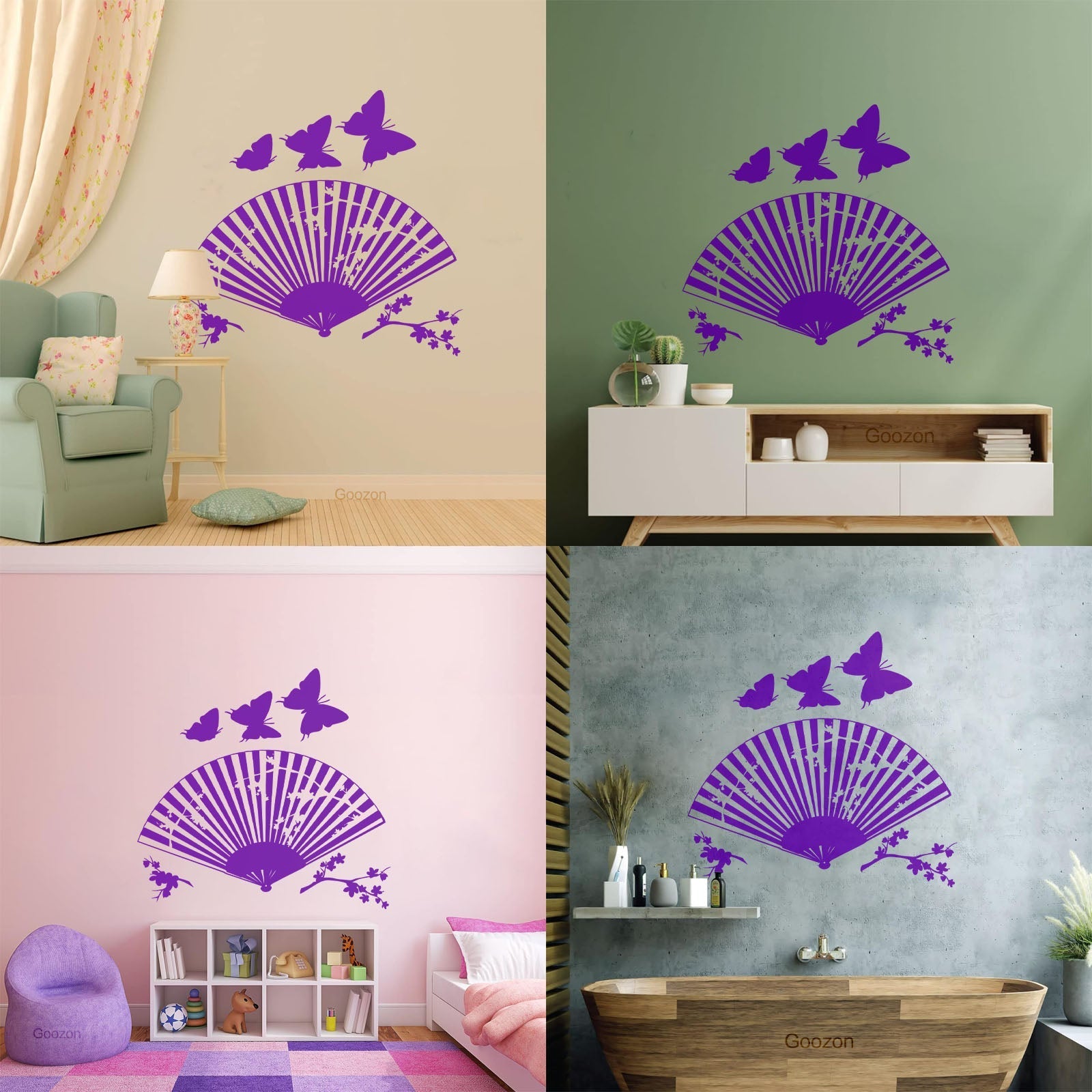 Wall Decals Asian Japanese Fan Sakura Branch Butterfly Art Mural Painting