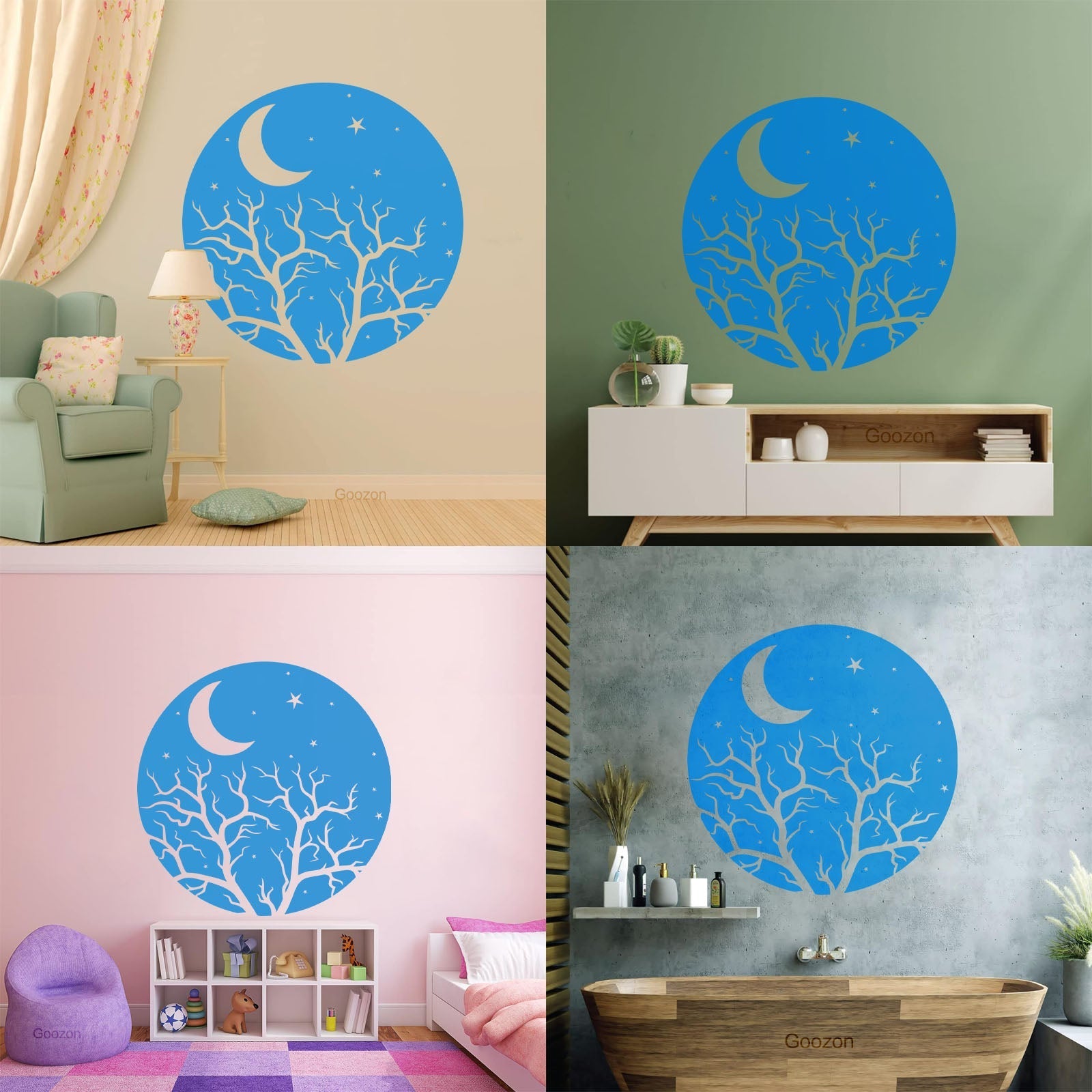 Vinyl Art Sticker Bedroom Good Night Stars Tree Branch Window Decals