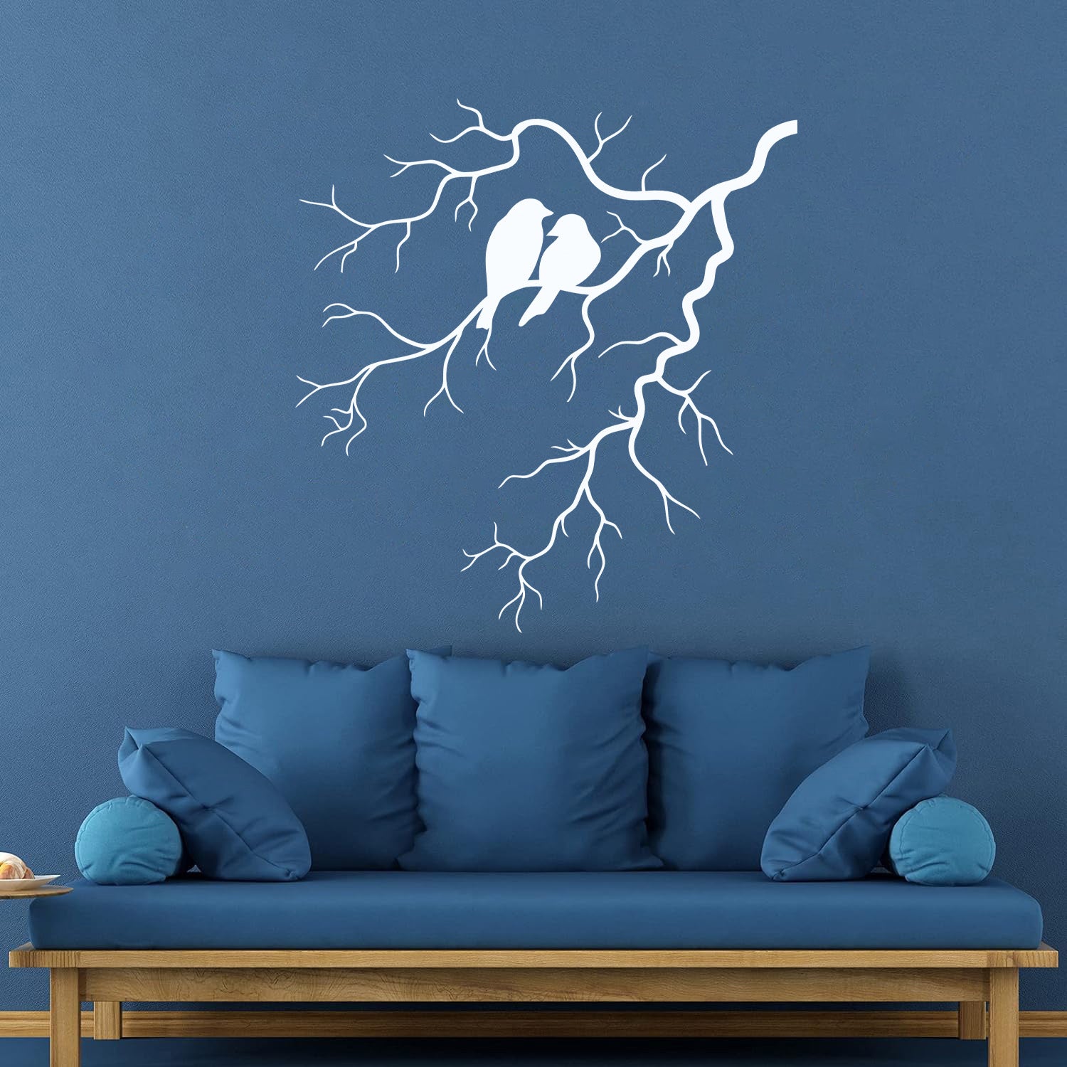 Engraving Decals Couple Birds Tree Branch Romance Tattoo Culture