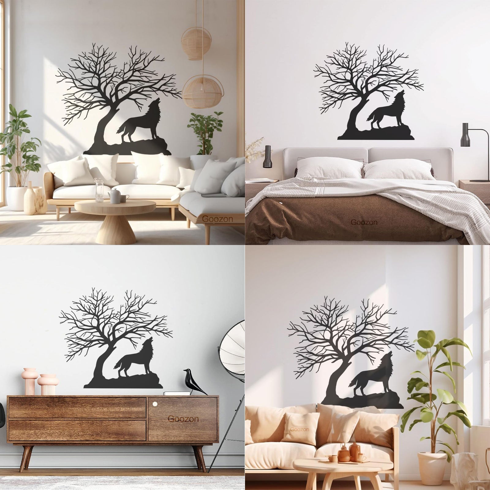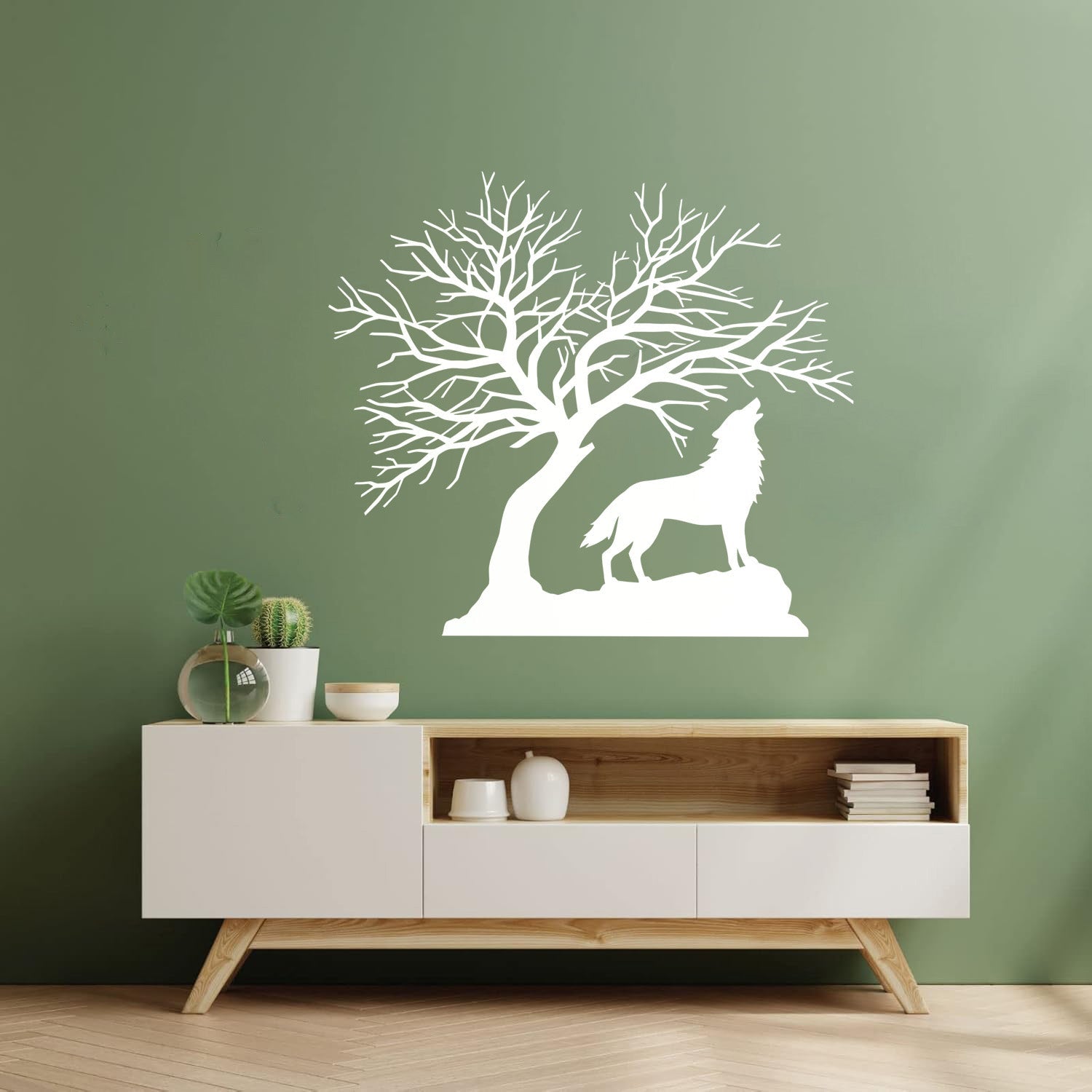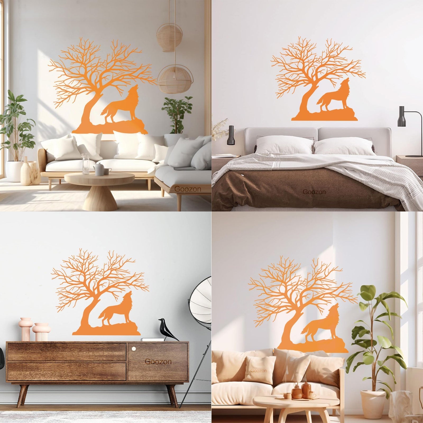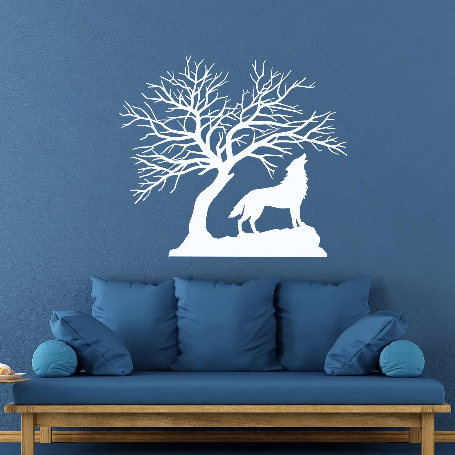 Howling Wolf Tree Branches Silhouette Natural Vinyl Wall Stickers It Won'T Fall Off