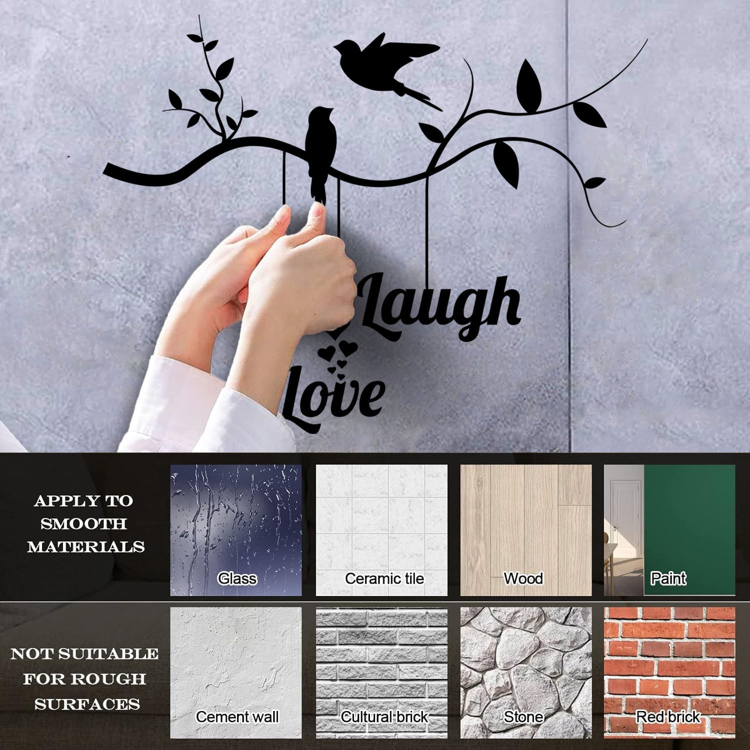 Wall Vinyl Sticker Decor Live Love Laugh Positive Phrase Birds On The Branch Window Decals