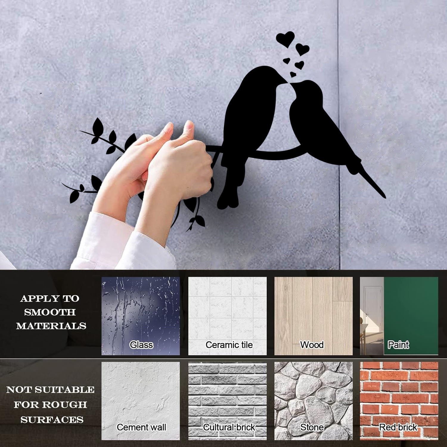 Fine Carving Stickers Love Hearts Birds On Branch Nursery Glass Stickers