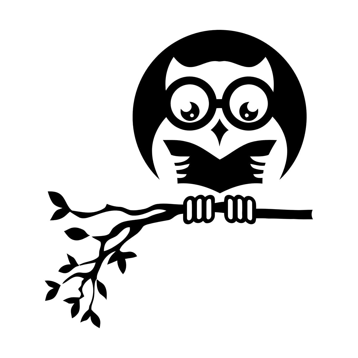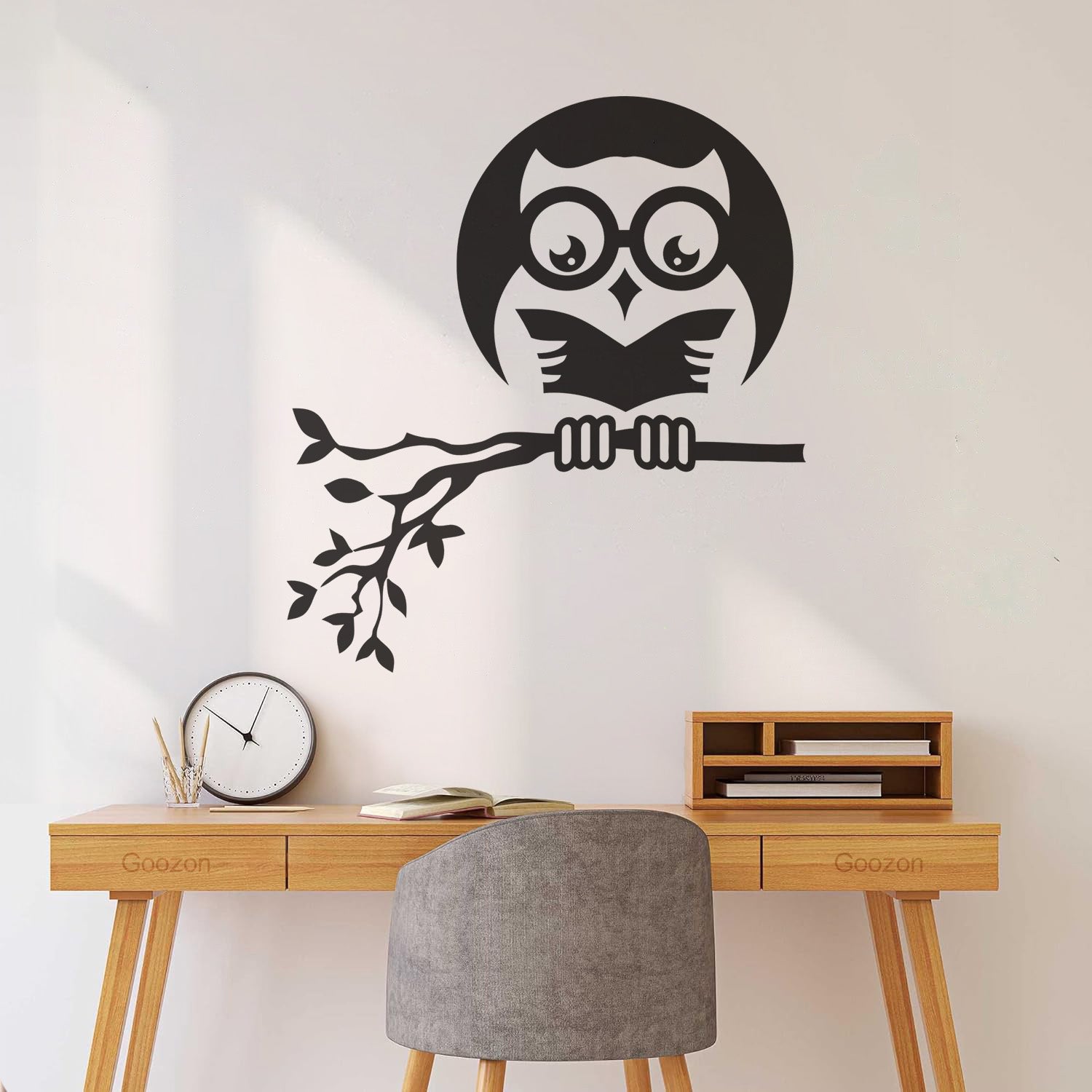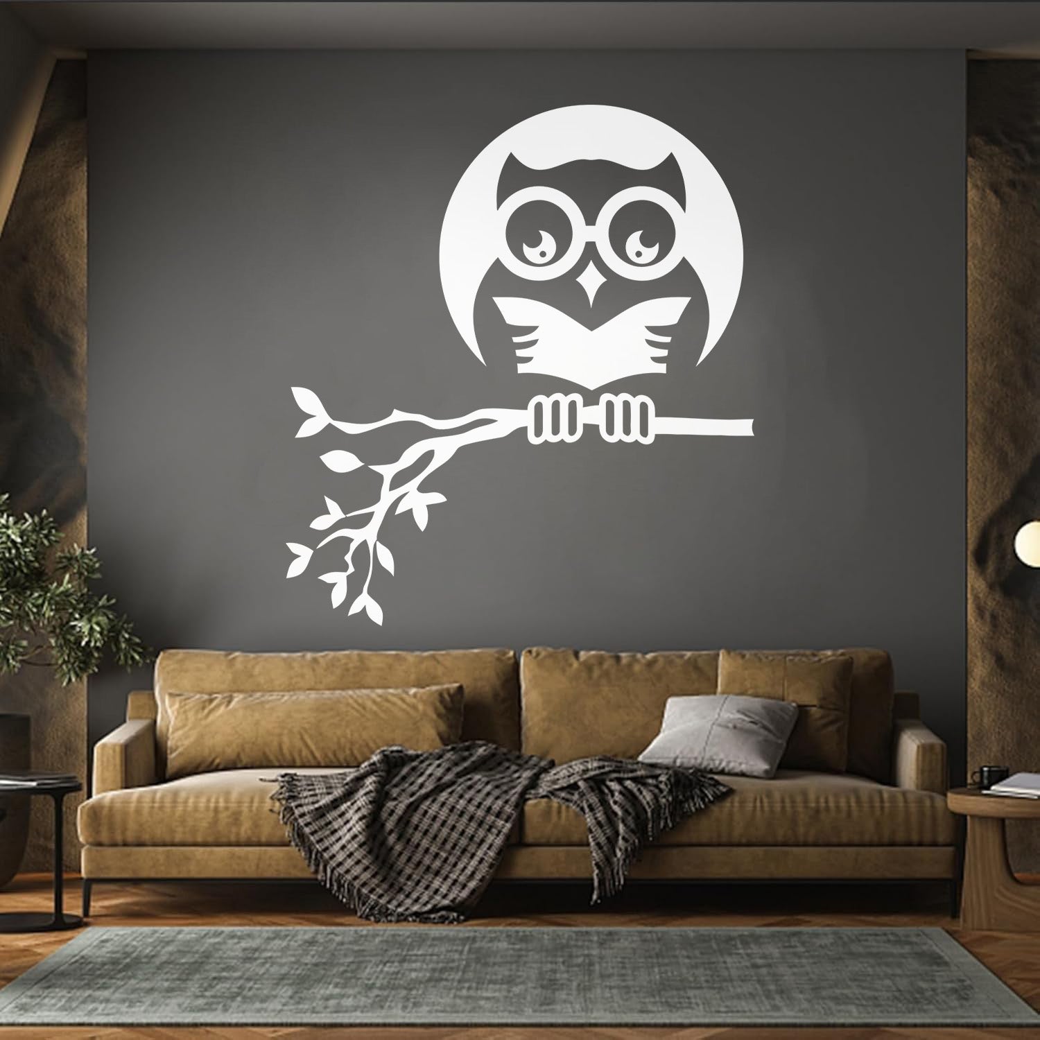 Fine Carving Stickers Owl On Branch Forest Night Moon Wall Beautification