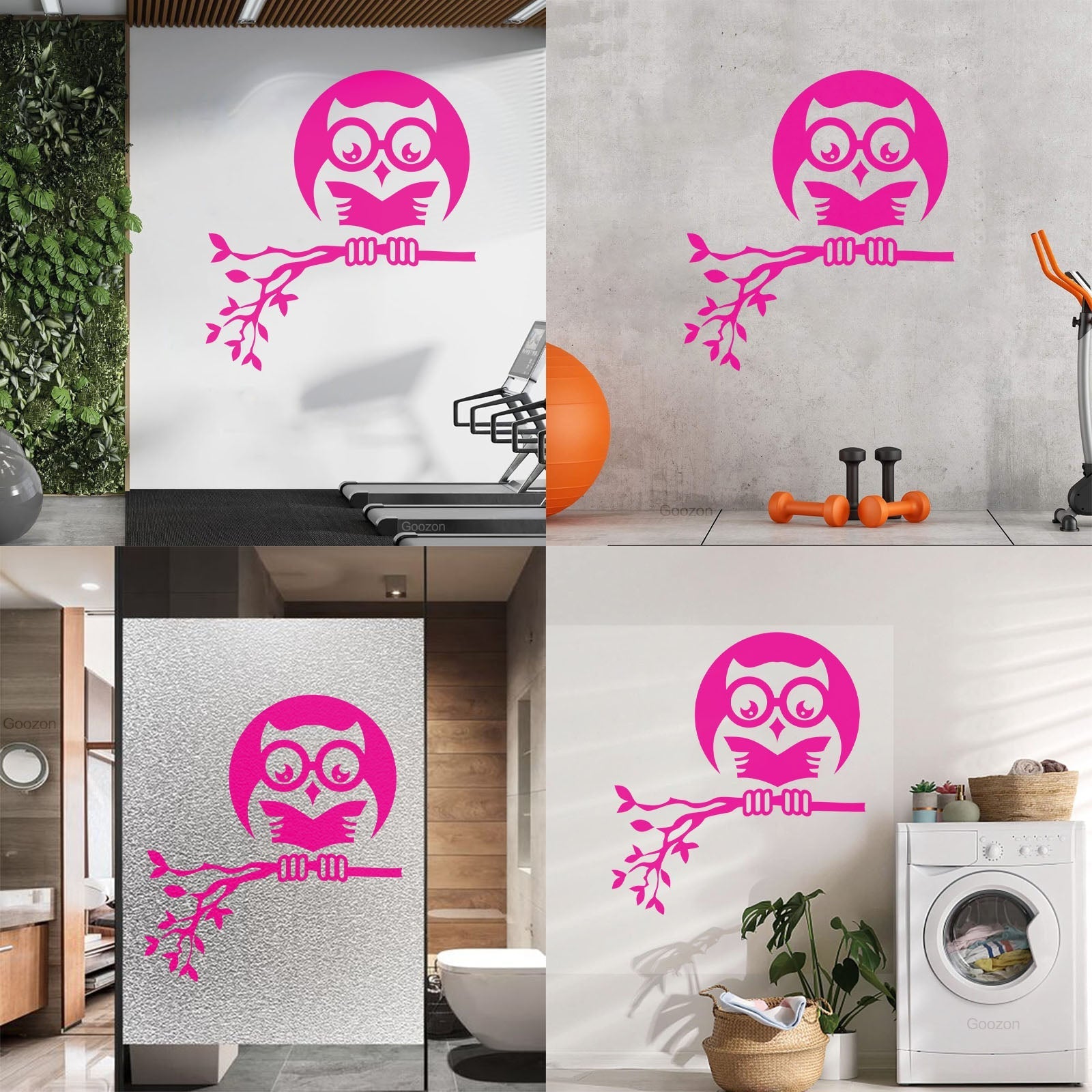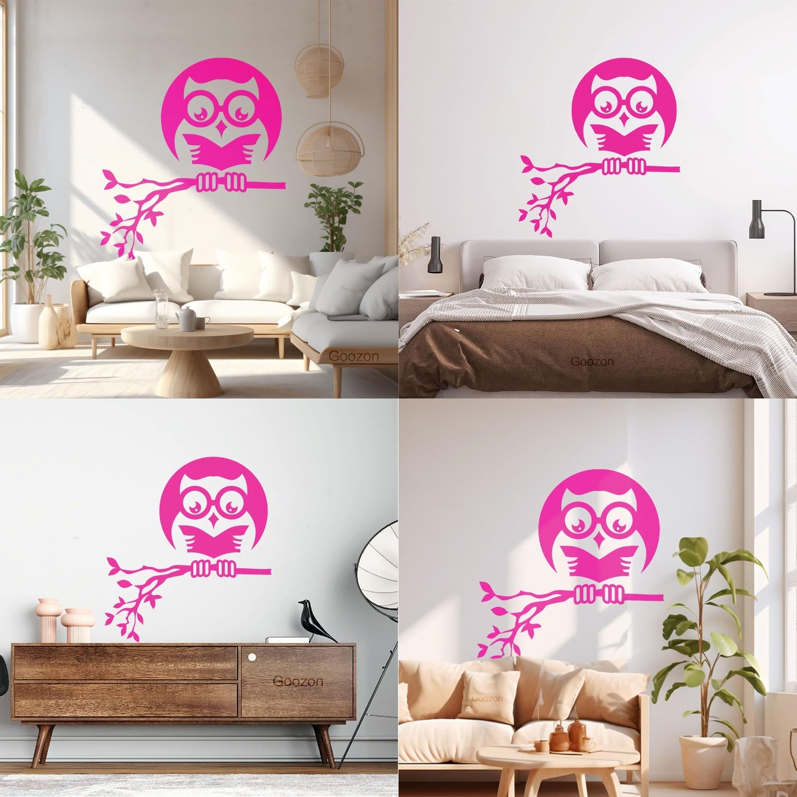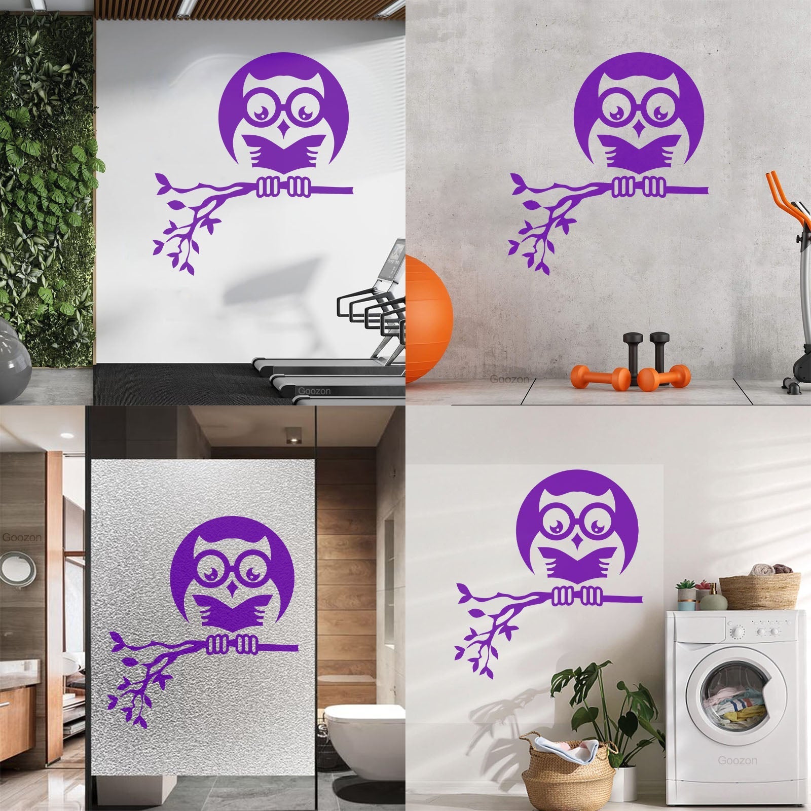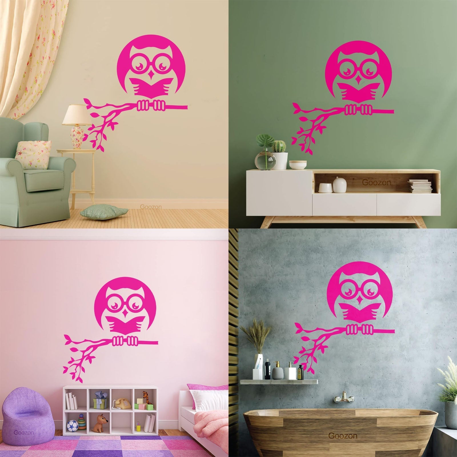 Fine Carving Stickers Owl On Branch Forest Night Moon Wall Beautification
