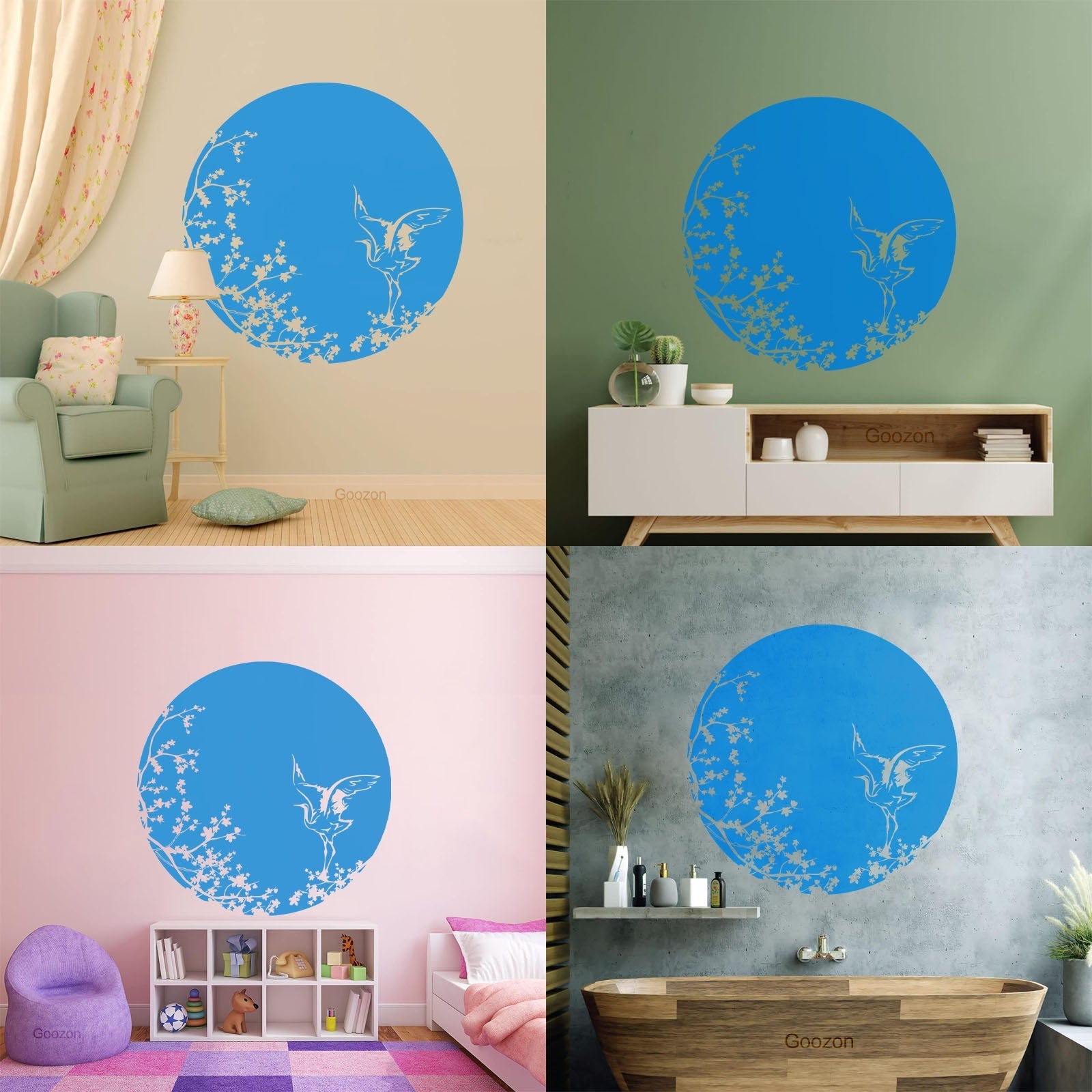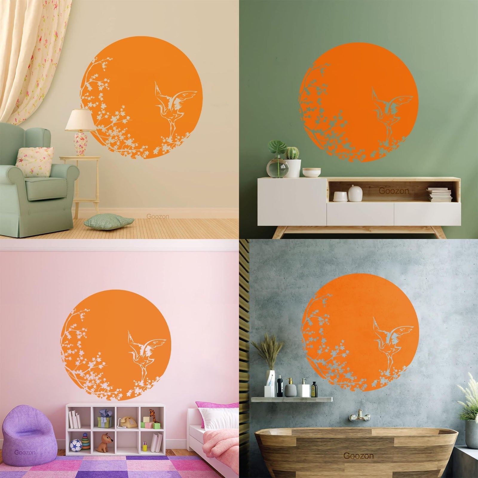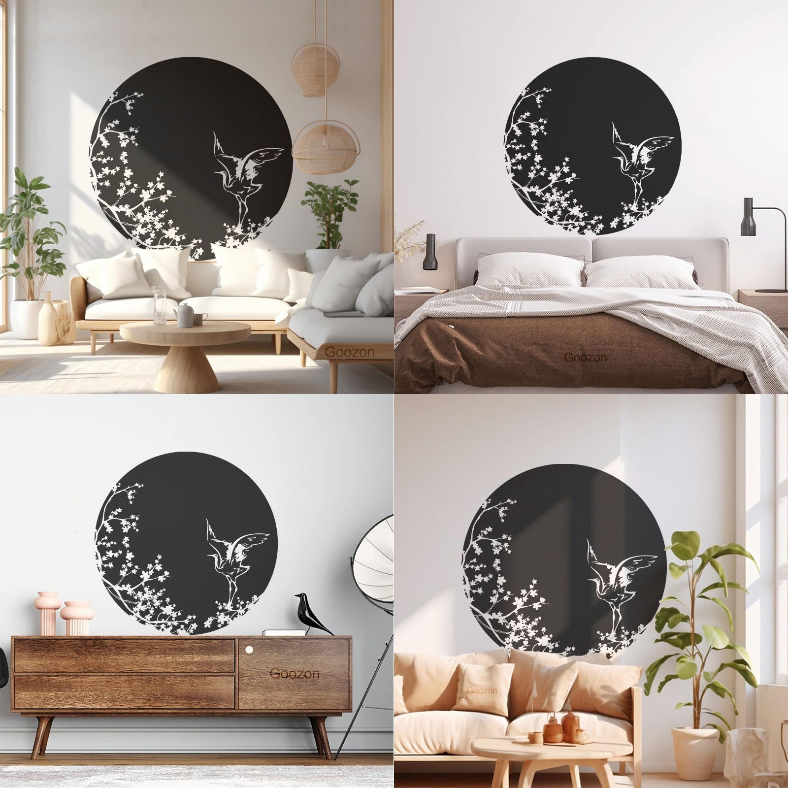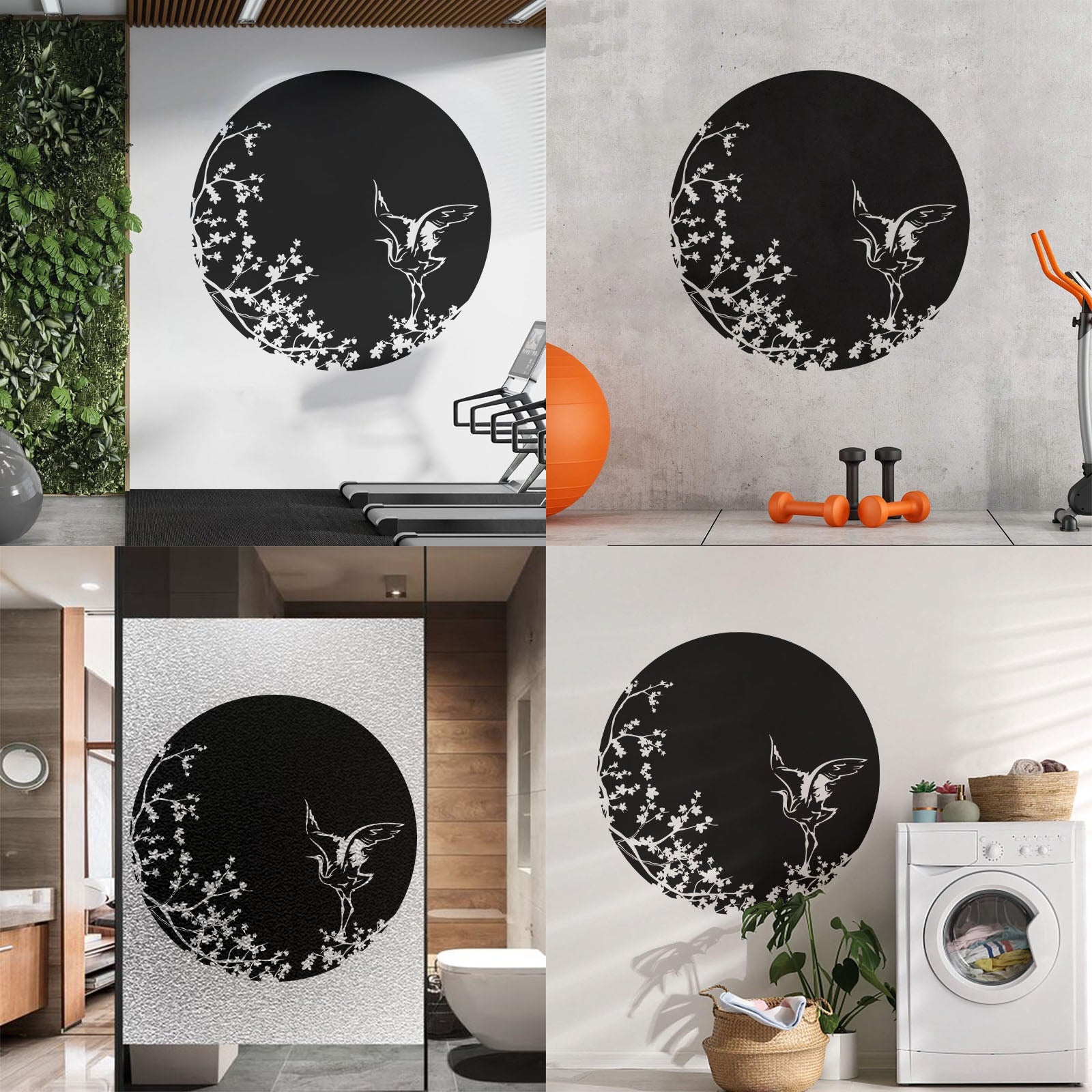 Sakura Tree Branch Heron Asian Style Bird Lettering Decals Tattoo Culture