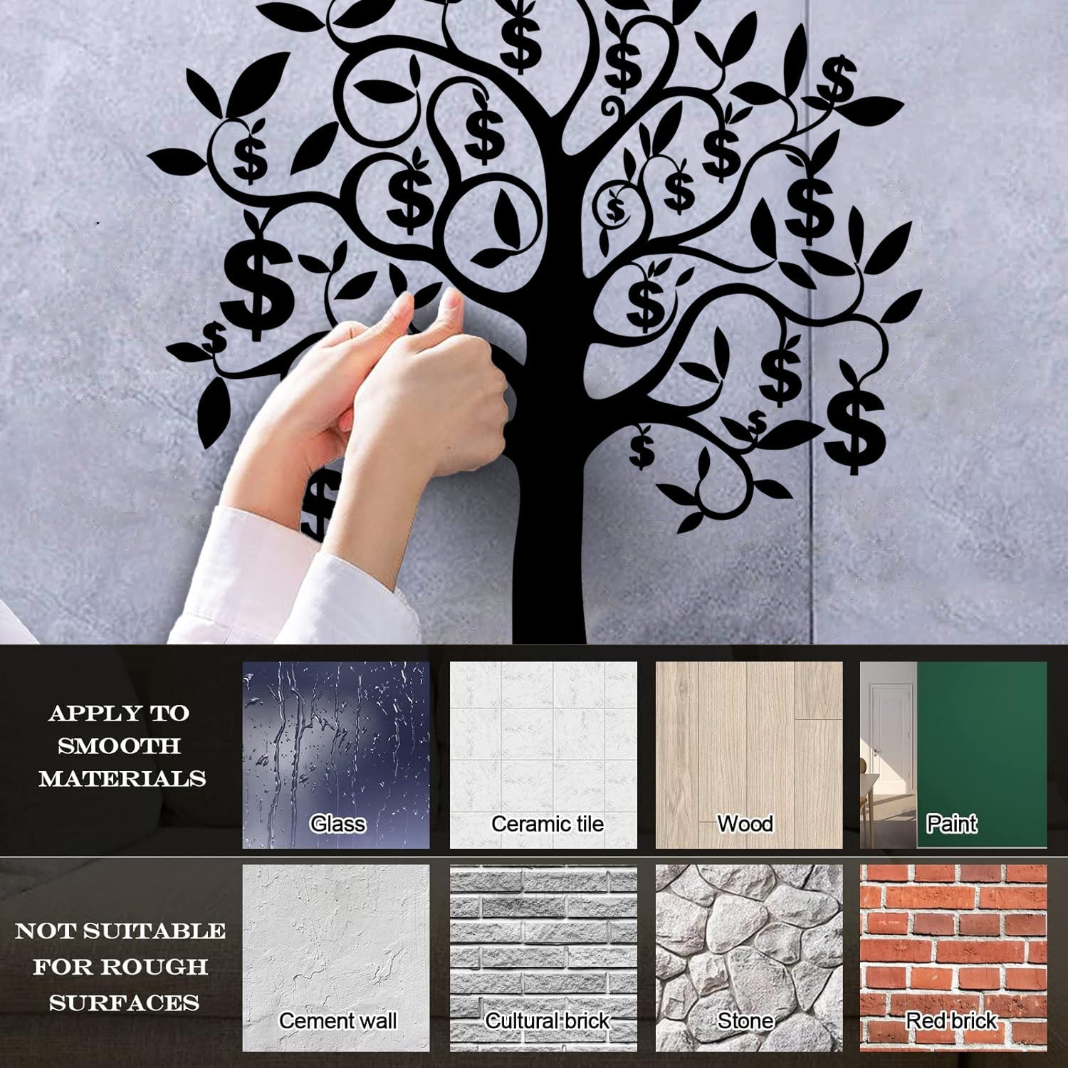 The wall sticker has an adhesive backing.