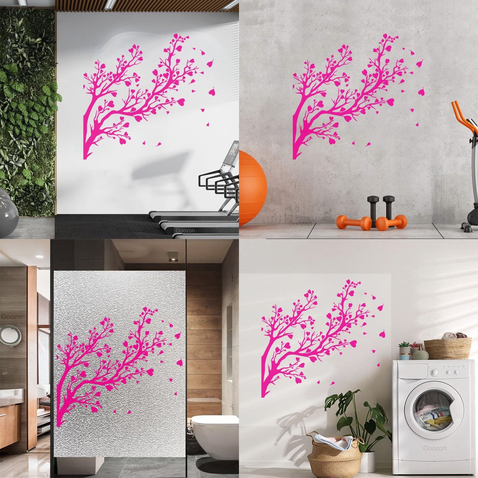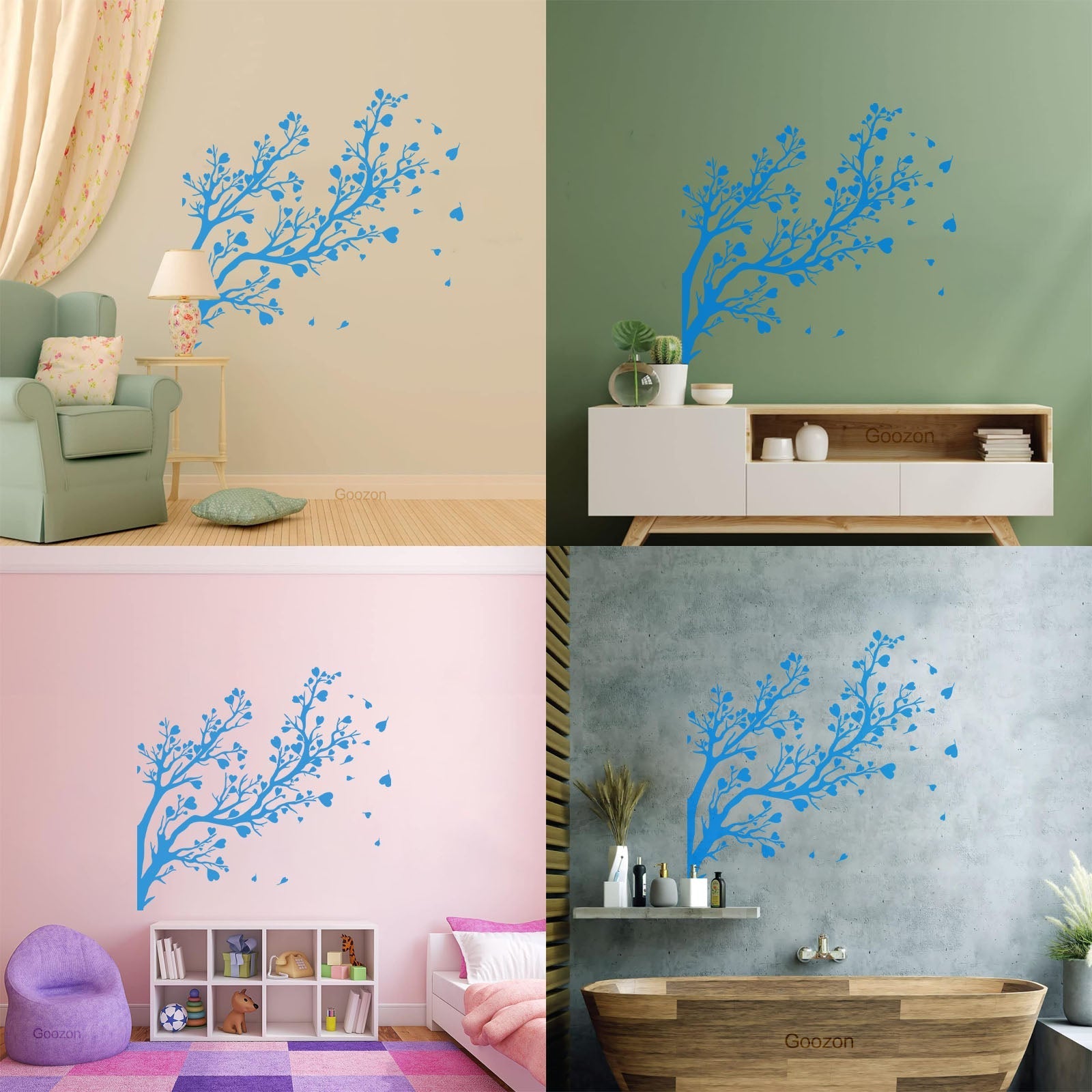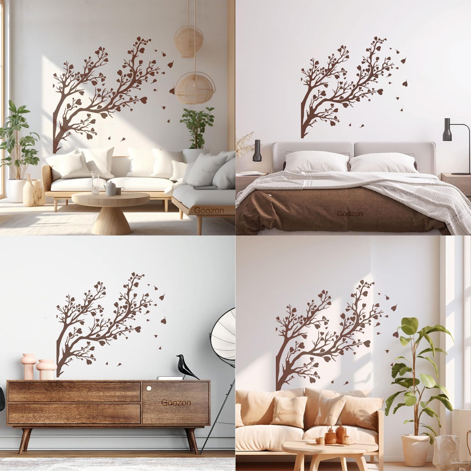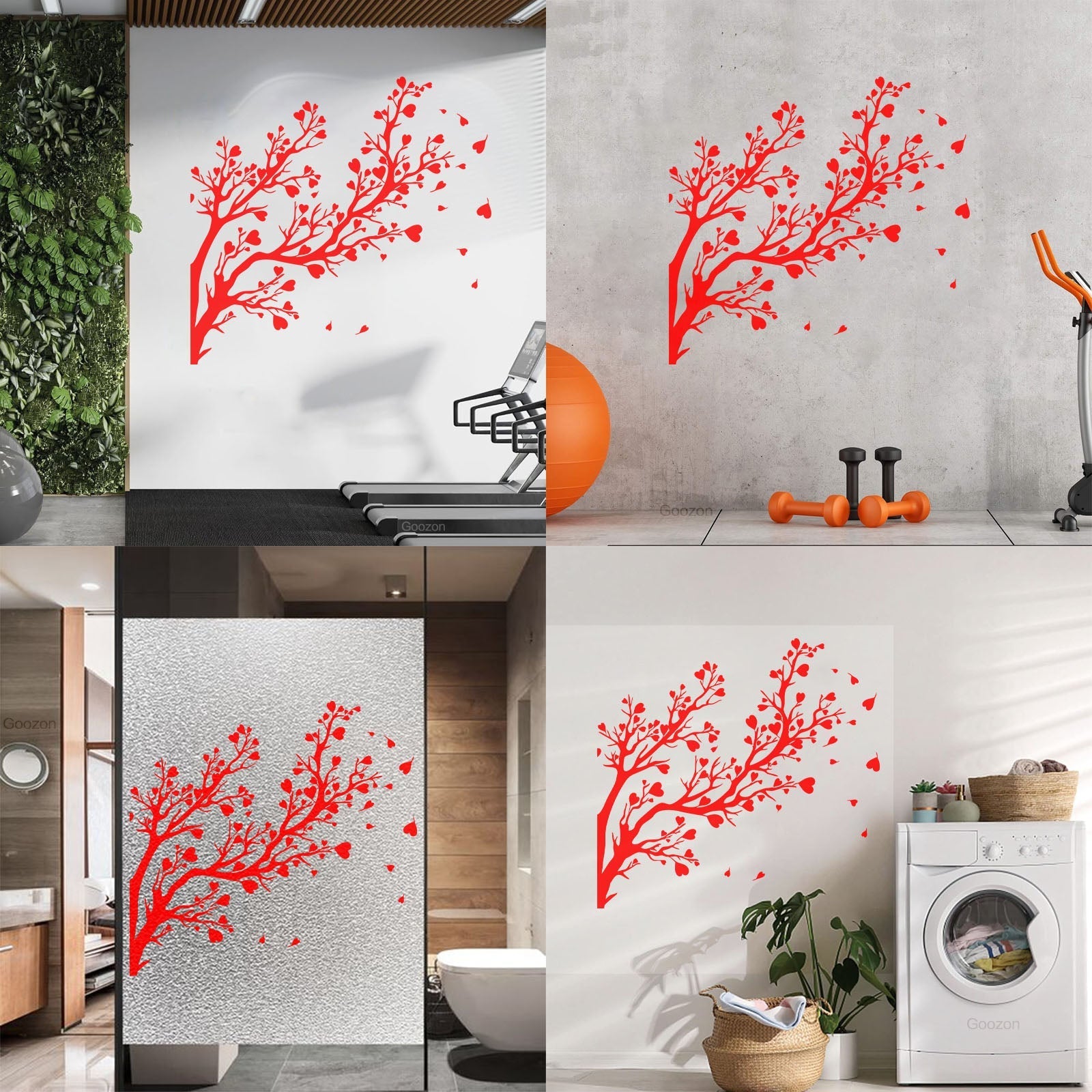 Fine Carving Decals Tree Branch Leaves Hearts Romance Art Decoration