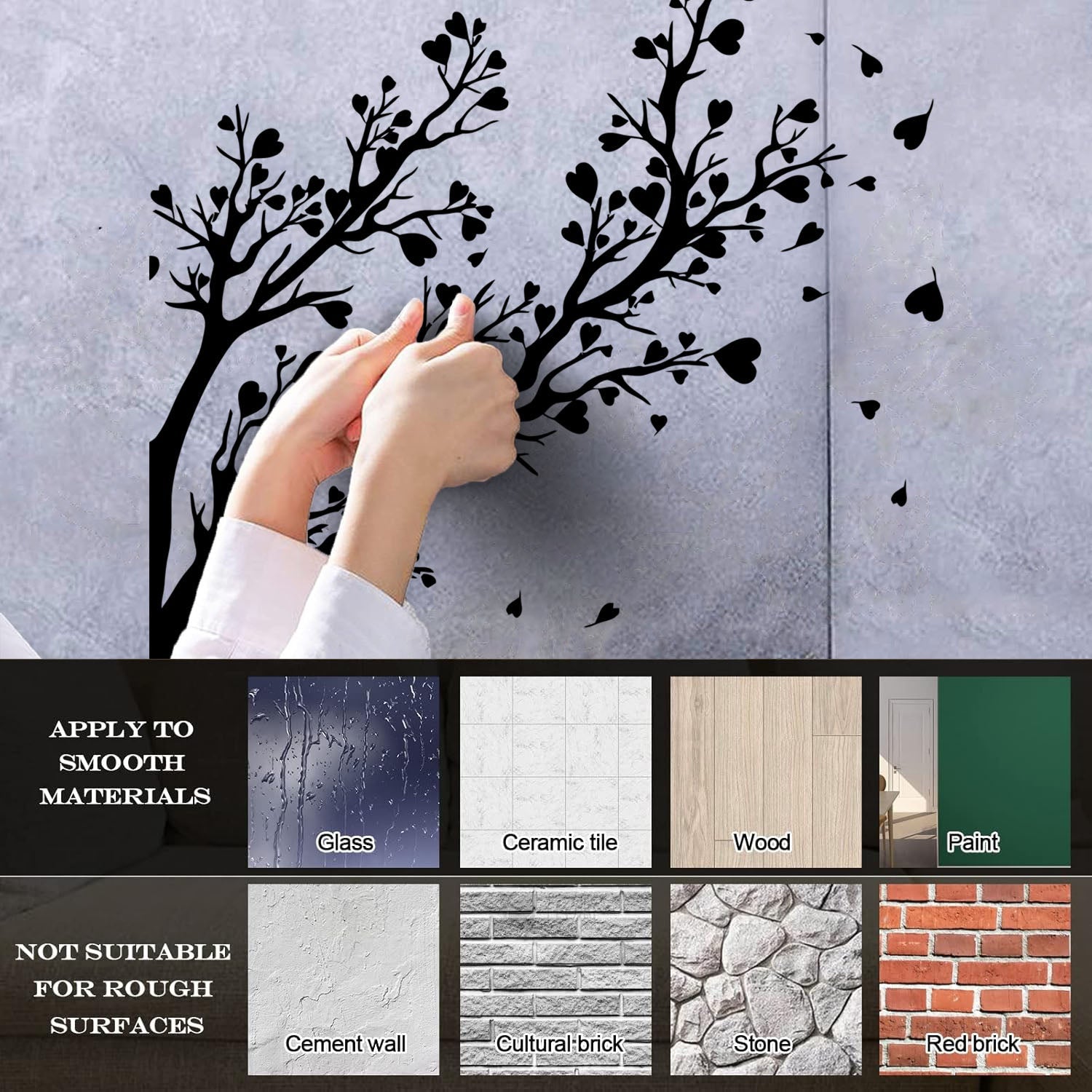 Gently press the decal area to secure it firmly to the wall.