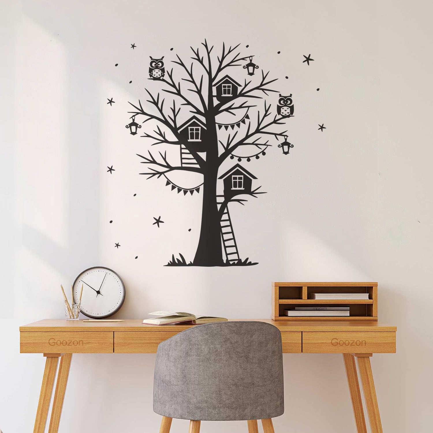Wall Decals Magic Tree Branch Star Owl Fairy Tale Store Decoration