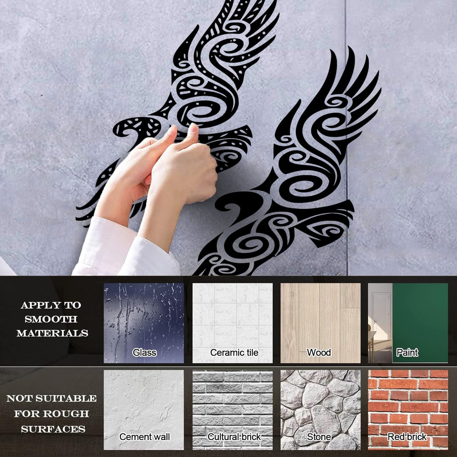 The wall sticker has an adhesive backing.
