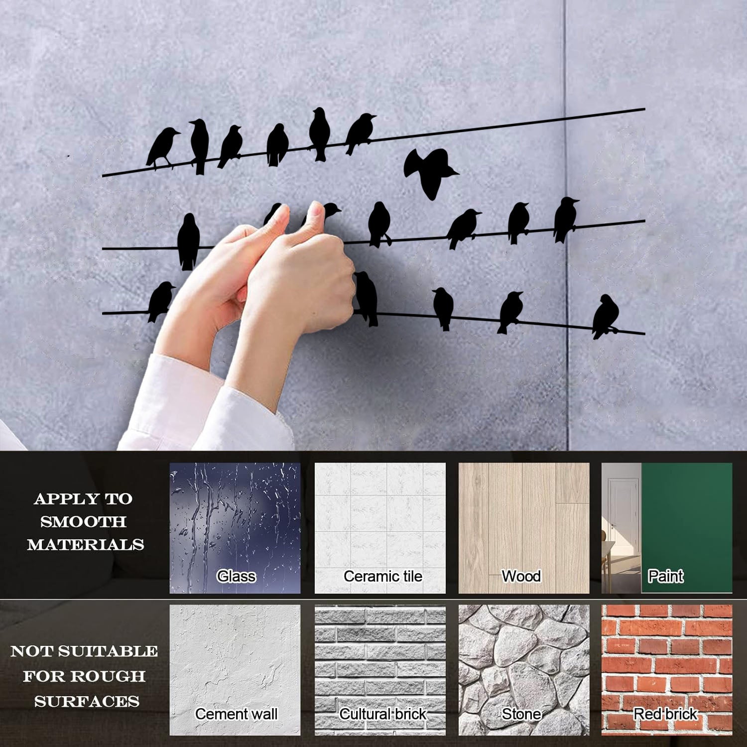 Abstract Flock Of Birds On Electric Wire Wall Vinyl Sticker Decor Glass Stickers