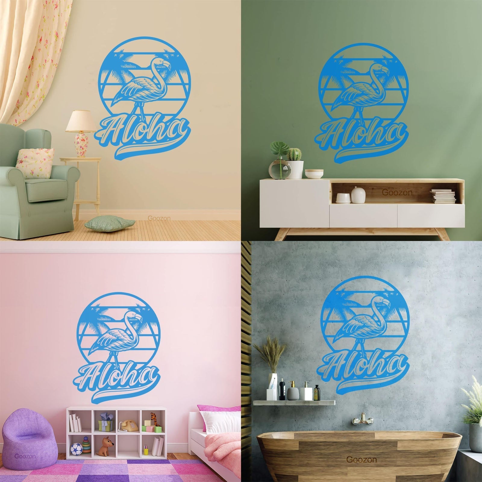 Wall Decals Pvc Aloha Flamingo Bird Beach Style Tropical Equipped With Transfer Film Kit